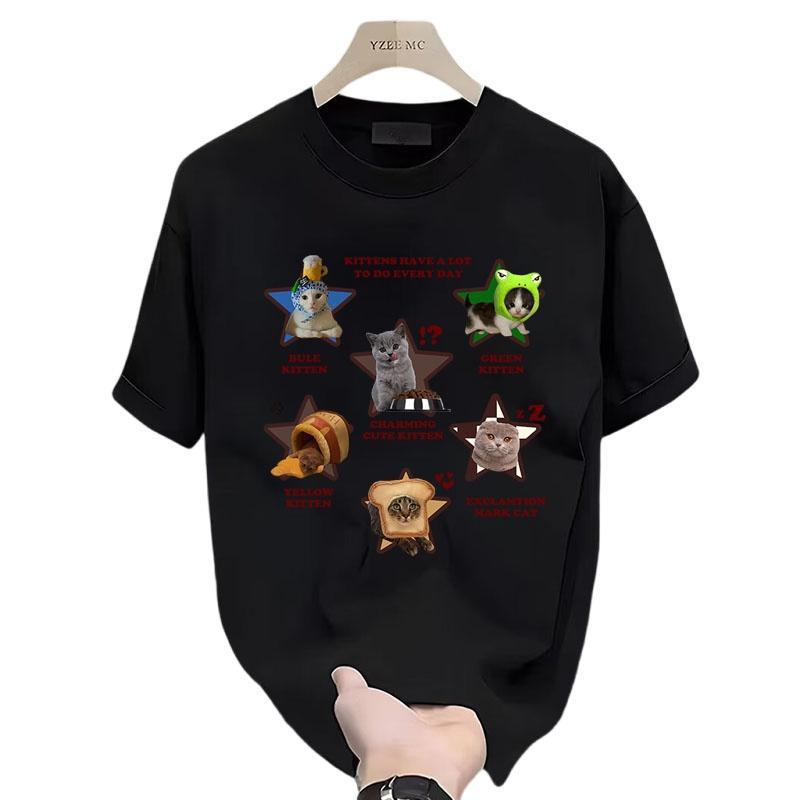 短恤t恤男生夏季新款长绒棉潮流美式休闲宽松半袖圆领休闲上衣服