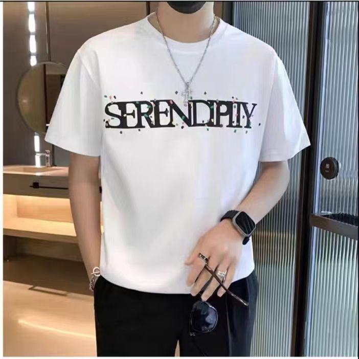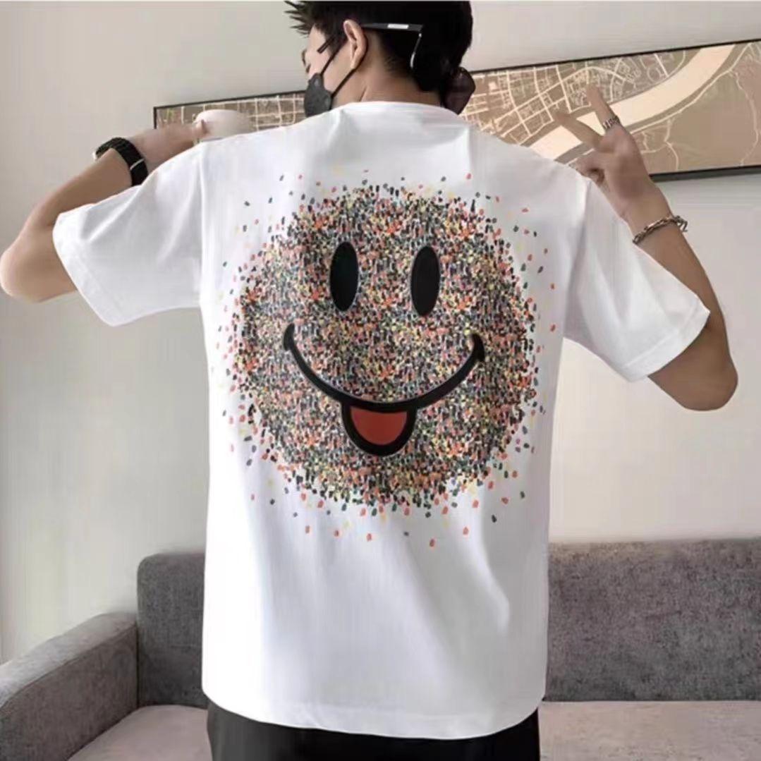 笑脸图案圆领T恤夏季新款男士设计师款出游洋气上衣纯棉宽松短袖t