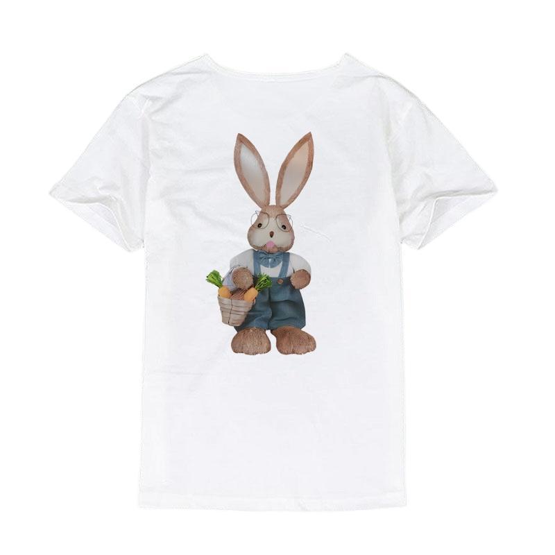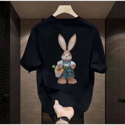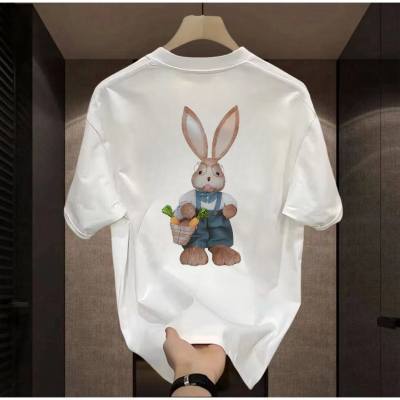 潮牌可爱兔子印花圆领短袖T恤男女同款宽松大码休闲情侣半袖上衣