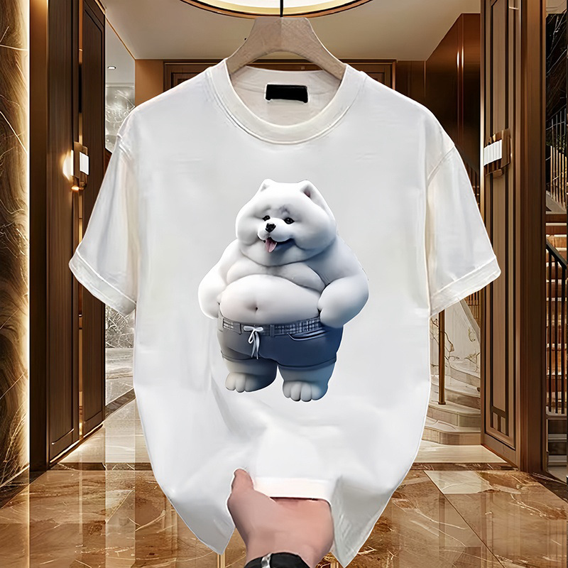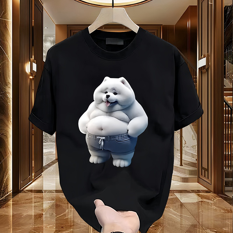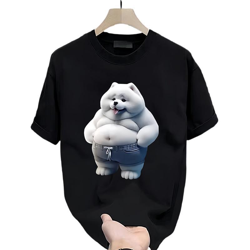 夏季新款美式痞帅短袖t恤男百搭宽松设计感白熊印花大码圆领上衣