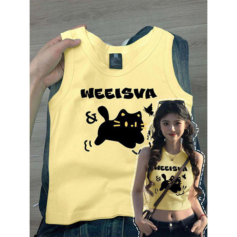 可爱减龄印花短款小背心女夏季新款多巴胺叠穿外搭修身上衣