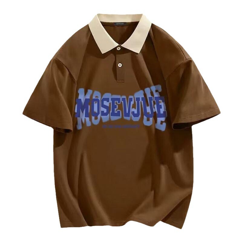 撞色POLO短袖衫男女款学院风夏季潮牌宽松纽扣体恤港风上衣男