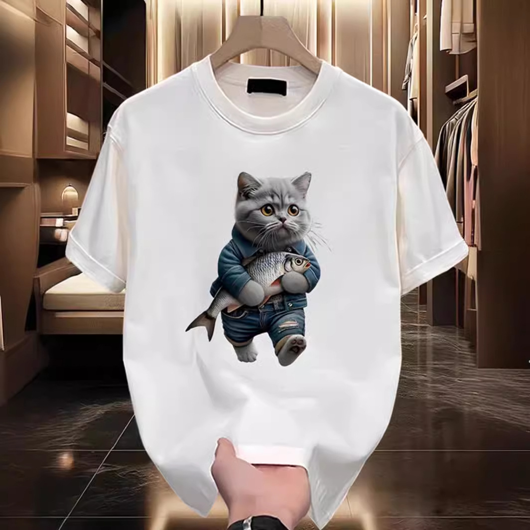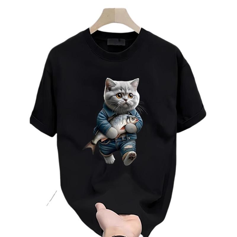 纯棉宽松黑色简约卡通印花显瘦遮肉t恤男生大码休闲风百搭体恤衫