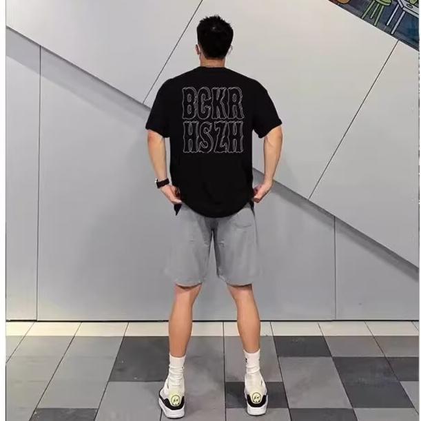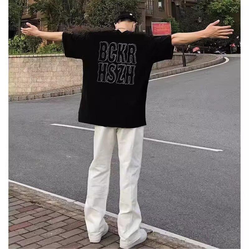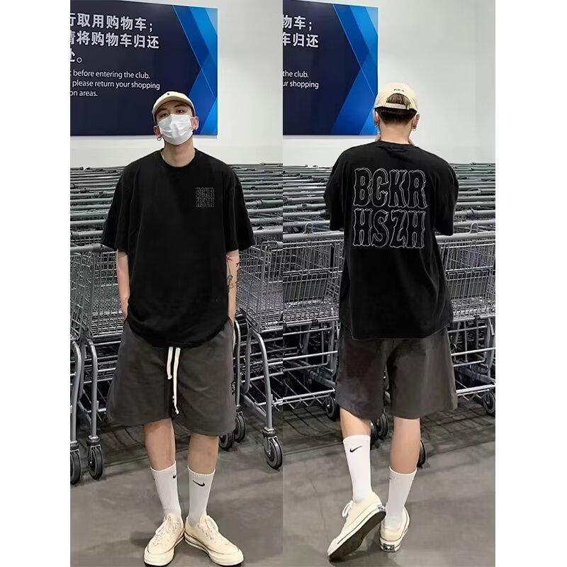 美式复古情侣短袖t恤男生夏季新款宽松黑色设计感小众ins潮上衣服