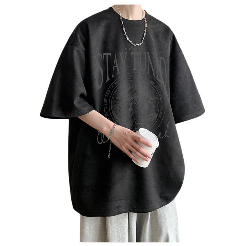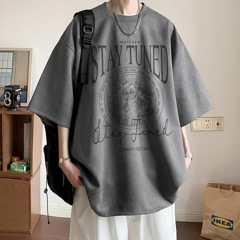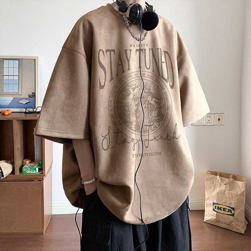 短袖t恤男生夏季新款美式复古潮牌痞帅时尚休闲百搭五分袖上衣服