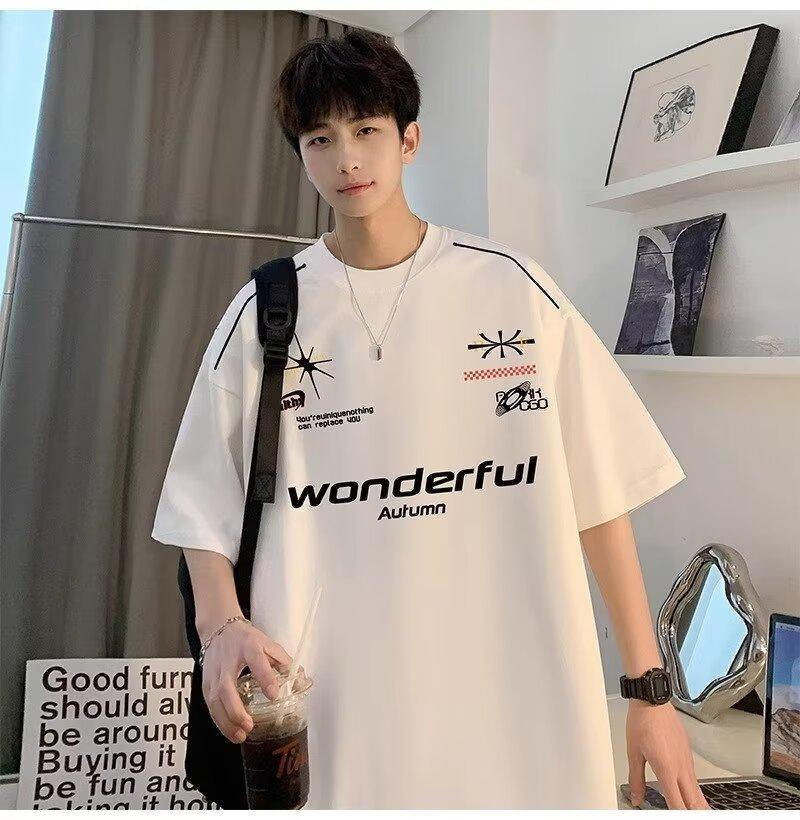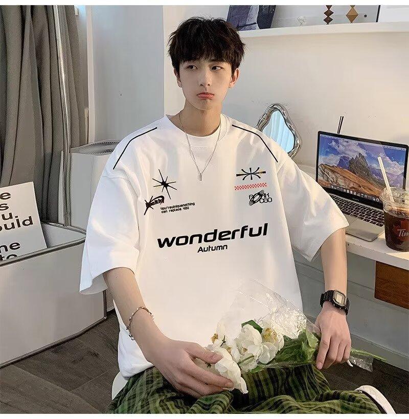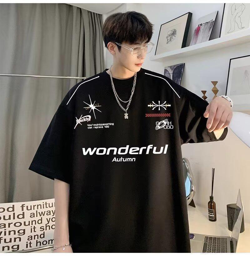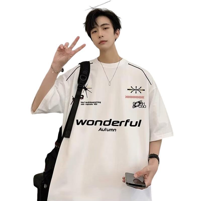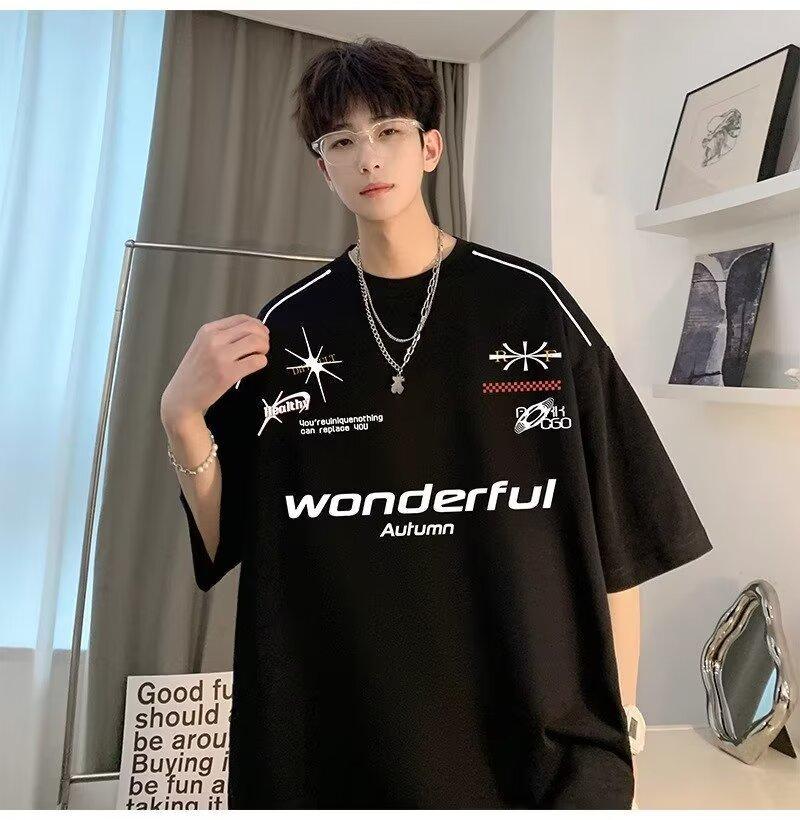 夏季新款美式短袖T恤男生潮牌ins港风情侣装嘻哈风高街宽松体恤衫