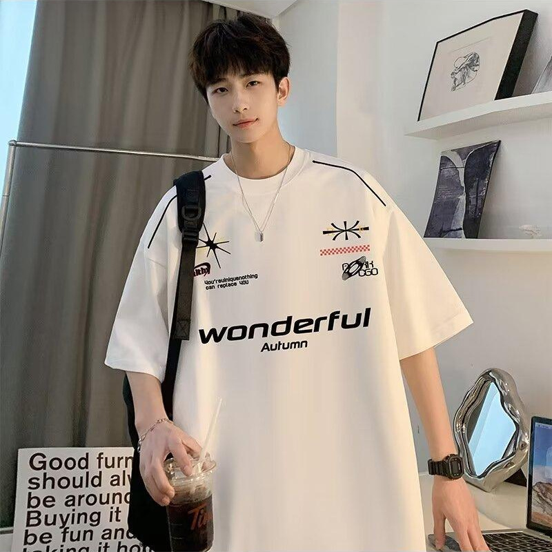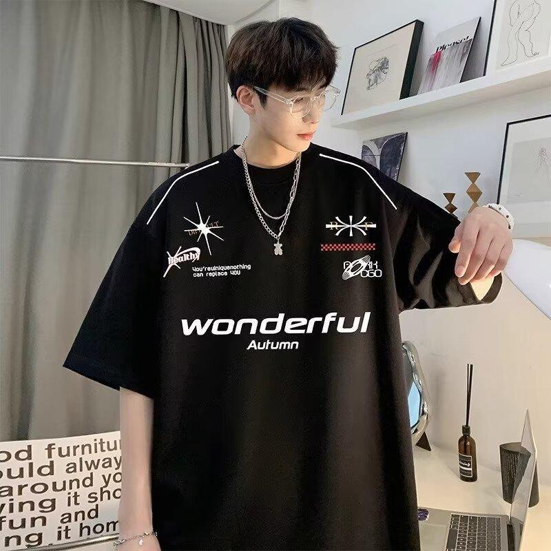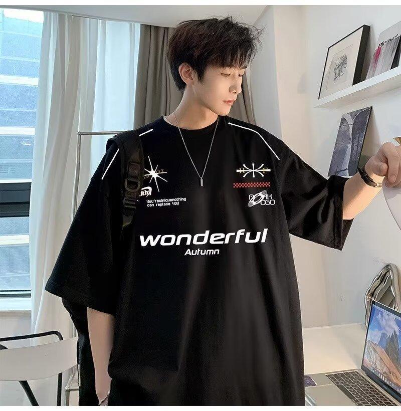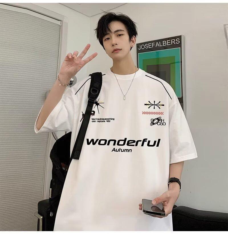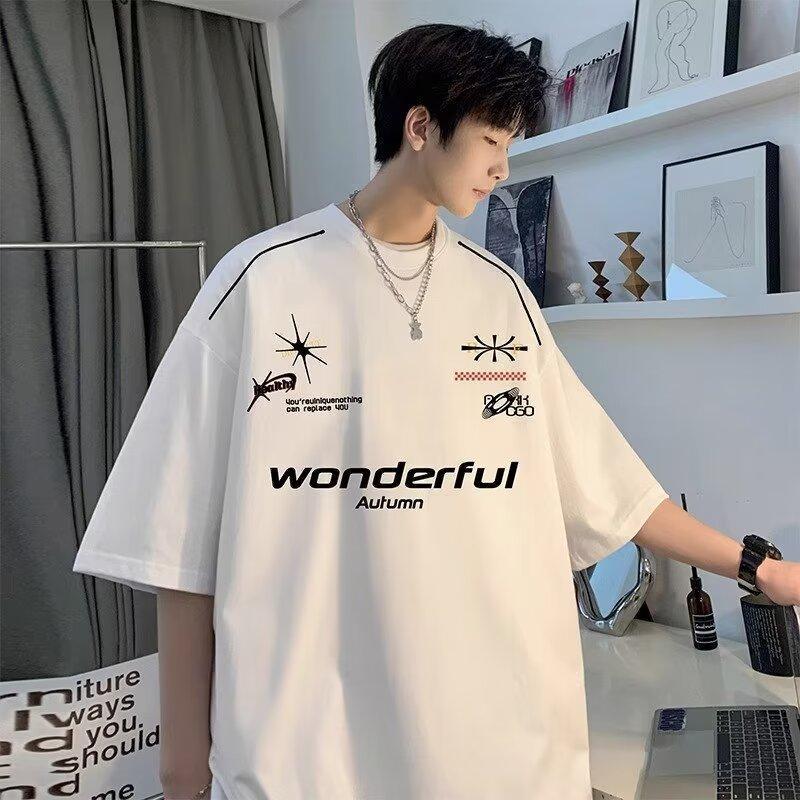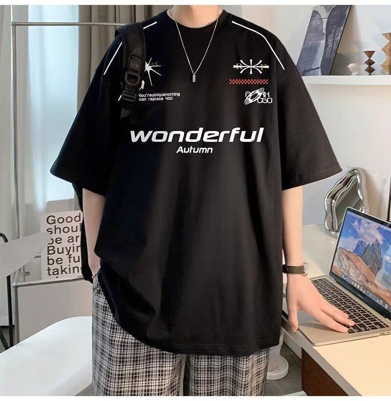 夏季新款美式短袖T恤男生潮牌ins港风情侣装嘻哈风高街宽松体恤衫