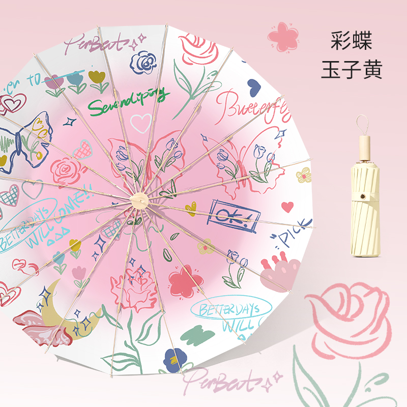 可爱16骨雨伞加大抗风折叠遮阳太阳伞女晴雨两用防晒防紫外线