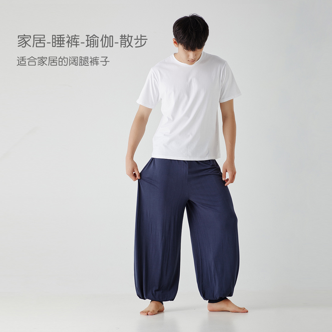 新款无缝男士家居裤莫代尔睡衣春秋薄款宽松舒适阔腿裤居家服