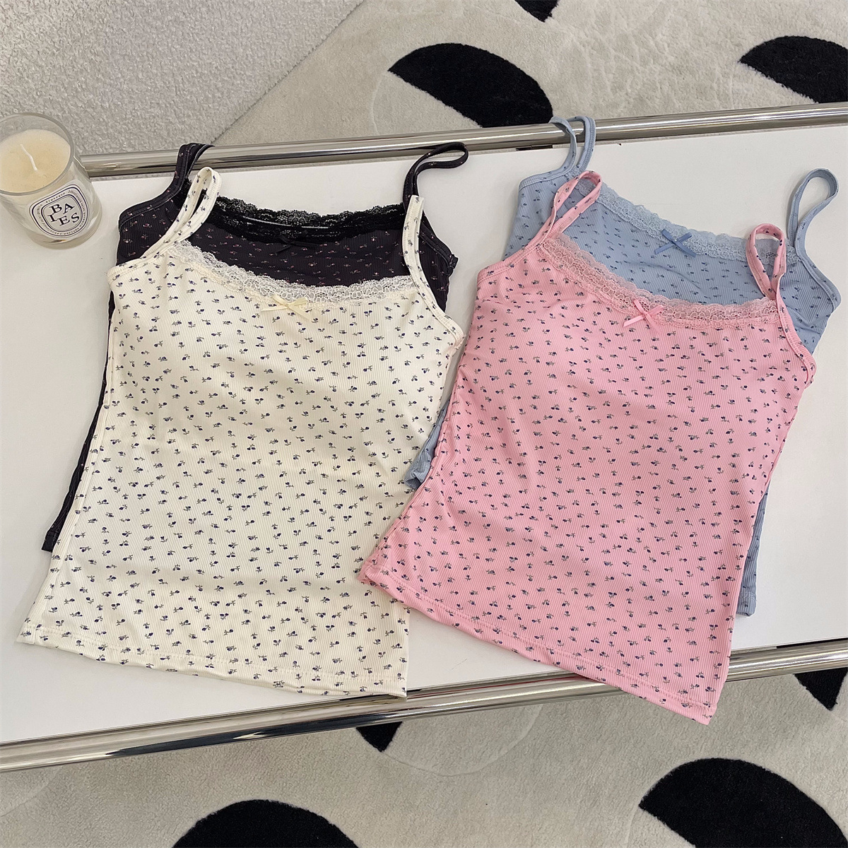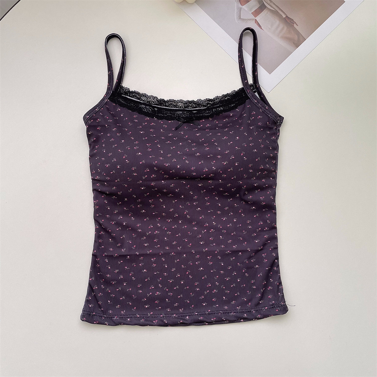 夏季冰丝印花可爱甜美吊带背心女带胸垫纯欲风修身内搭可外穿美背