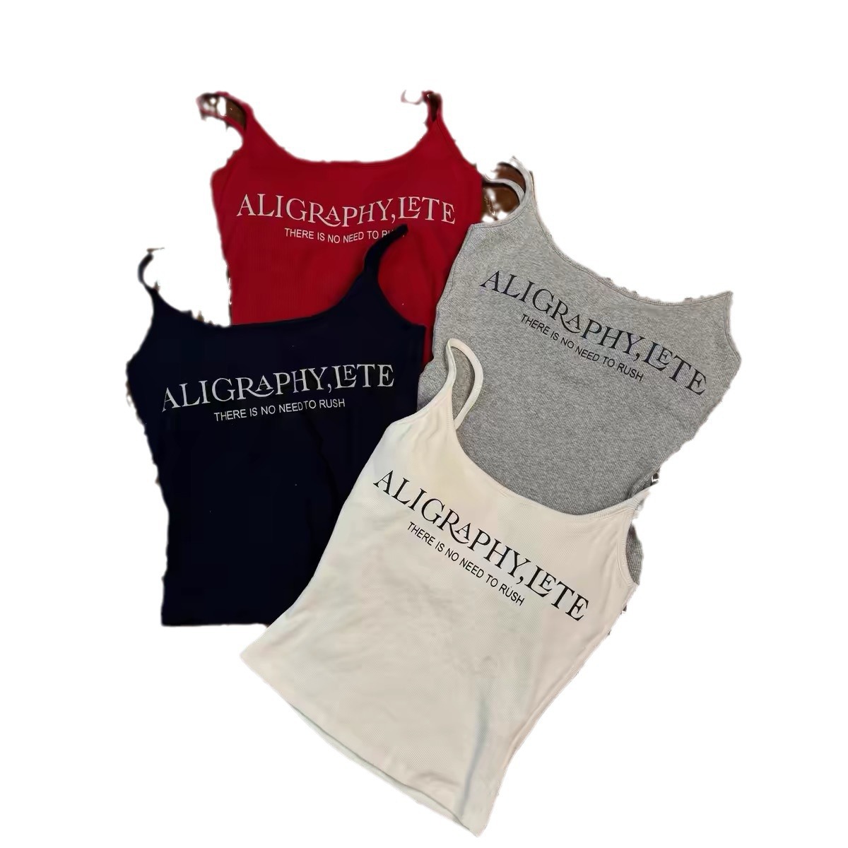 新款英文字母印花吊带背心女带胸垫辣妹修身内搭可外穿美背上衣女