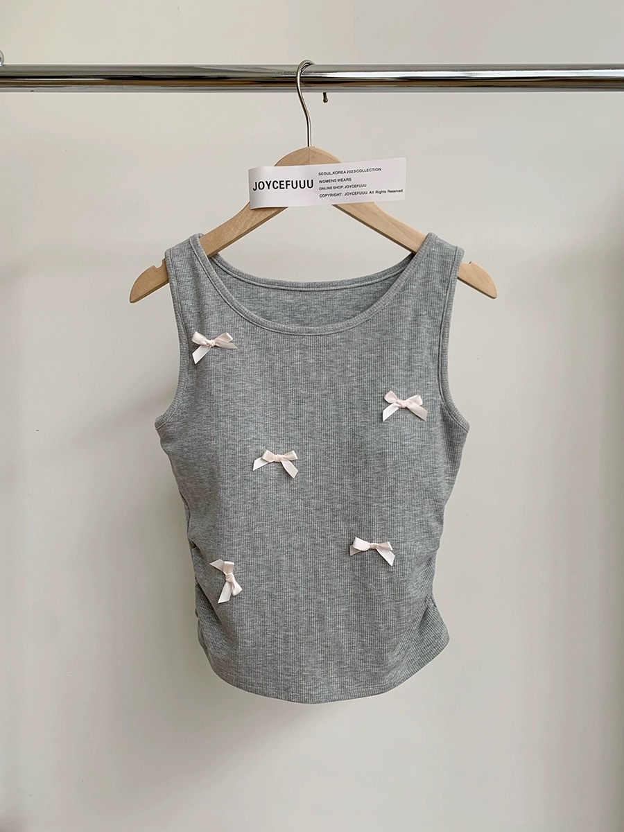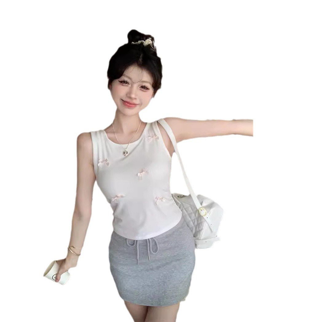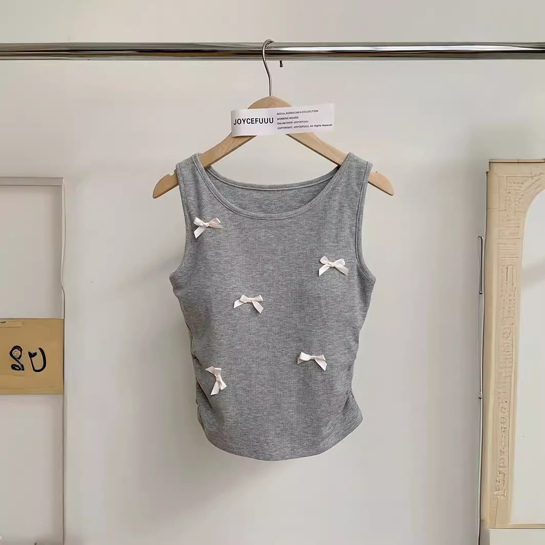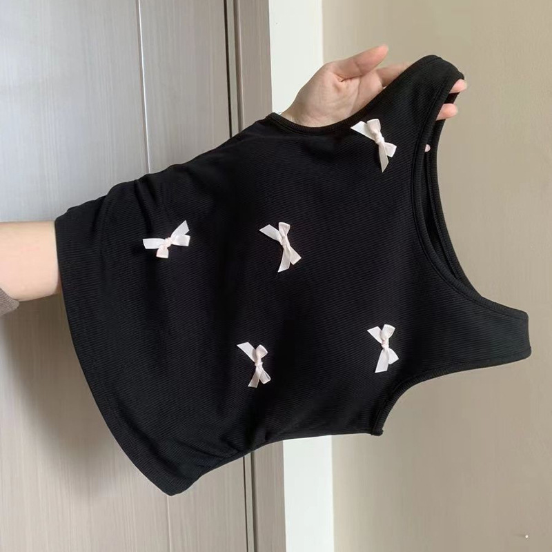 夏季显瘦短款甜美蝴蝶结外穿吊带女高质量人棉带胸垫无袖修身上衣