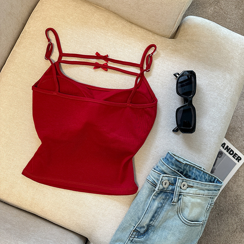 纯欲辣妹蝴蝶结吊带背心女夏外穿内搭打底带胸垫性感美背抹胸上衣