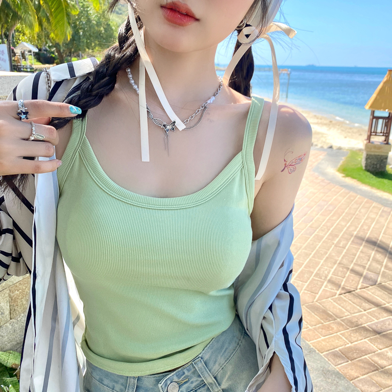 细肩带吊带背心女纯夏新款外穿美背内衣带胸垫一体内搭打底上衣