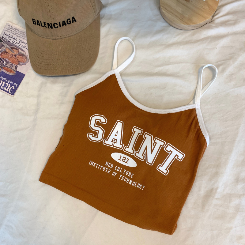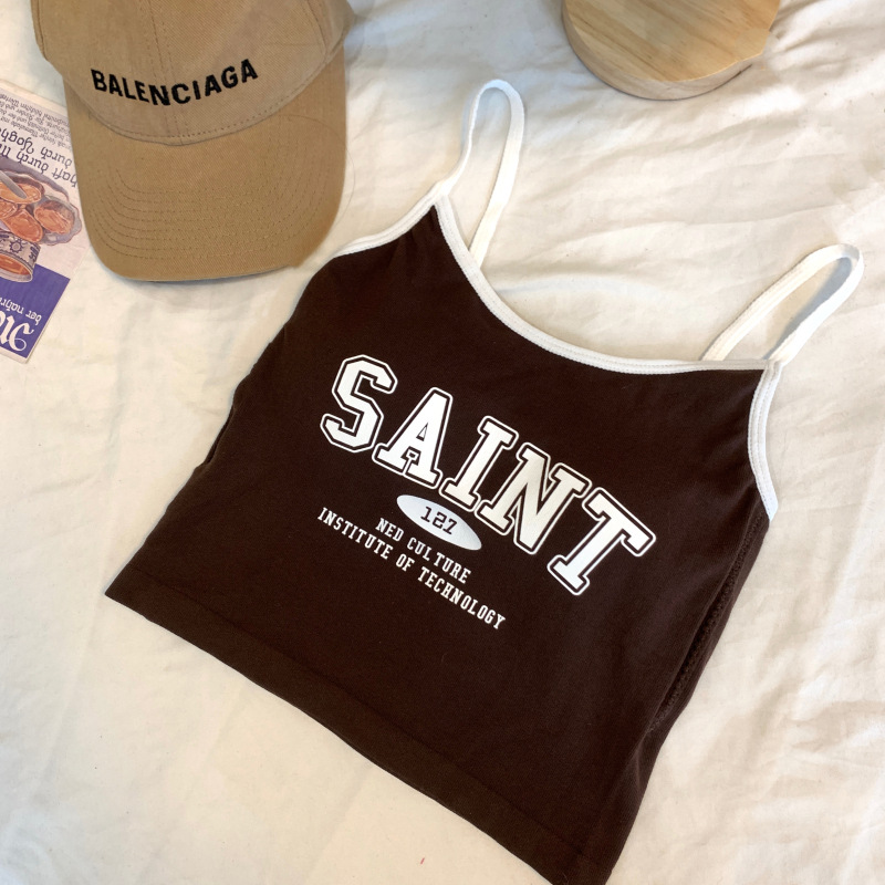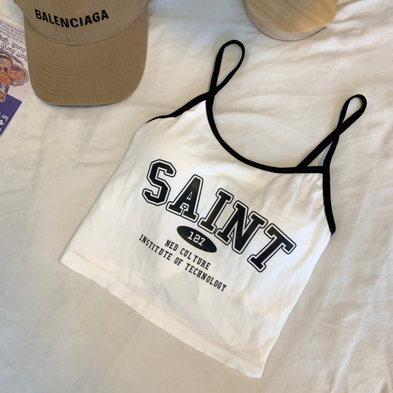 夏季新款百搭字母印花吊带背心女带胸垫修身内搭外穿短款辣妹上衣