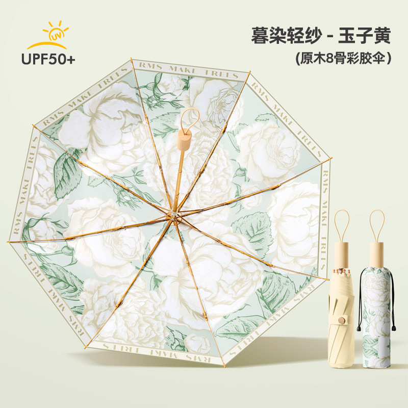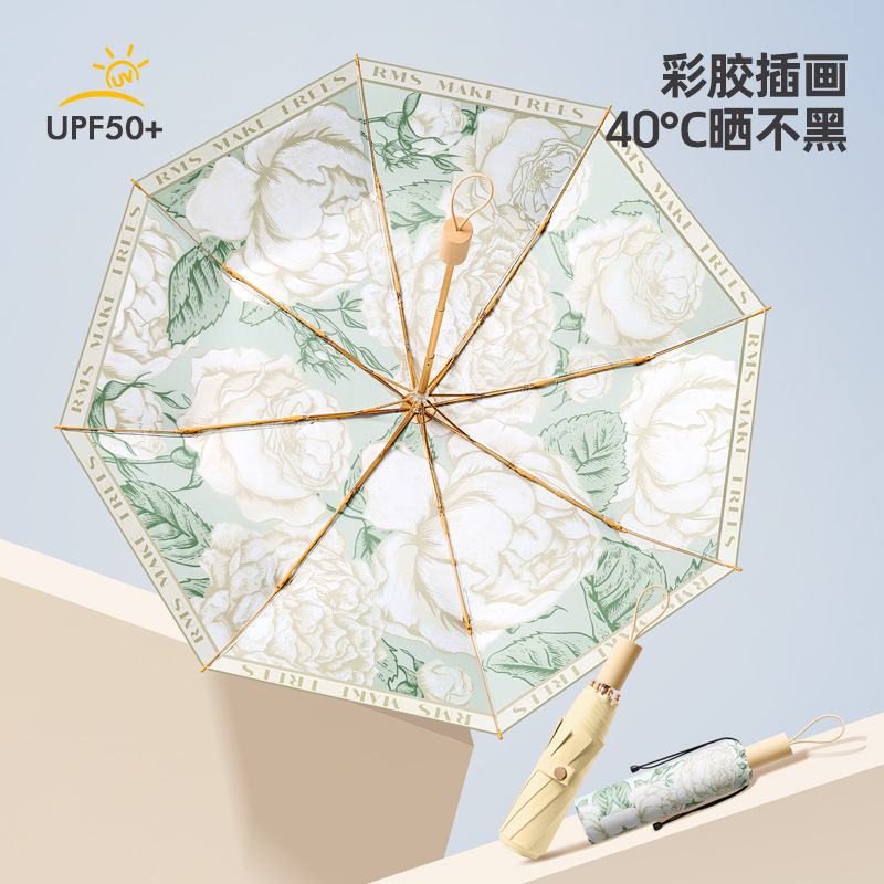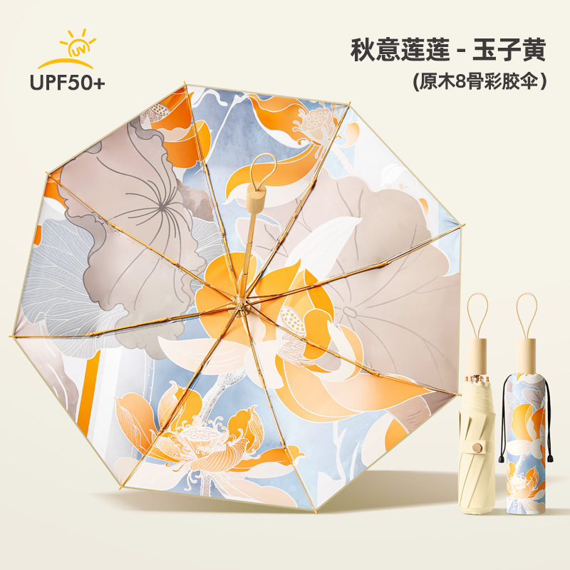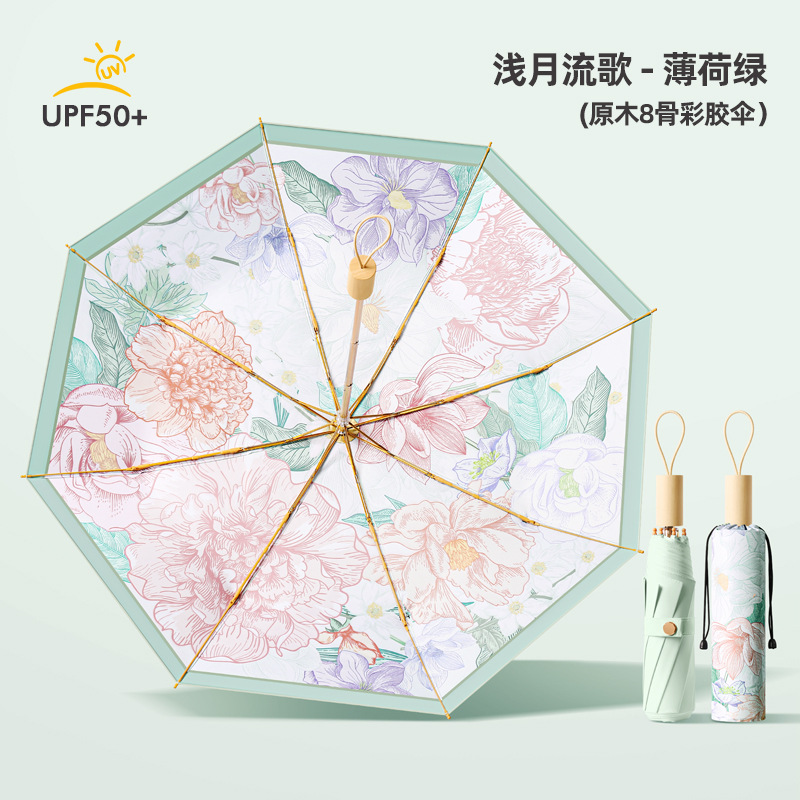 新款8骨手开彩胶面料遮阳伞三折防晒伞折叠太阳伞晴雨两用女神伞