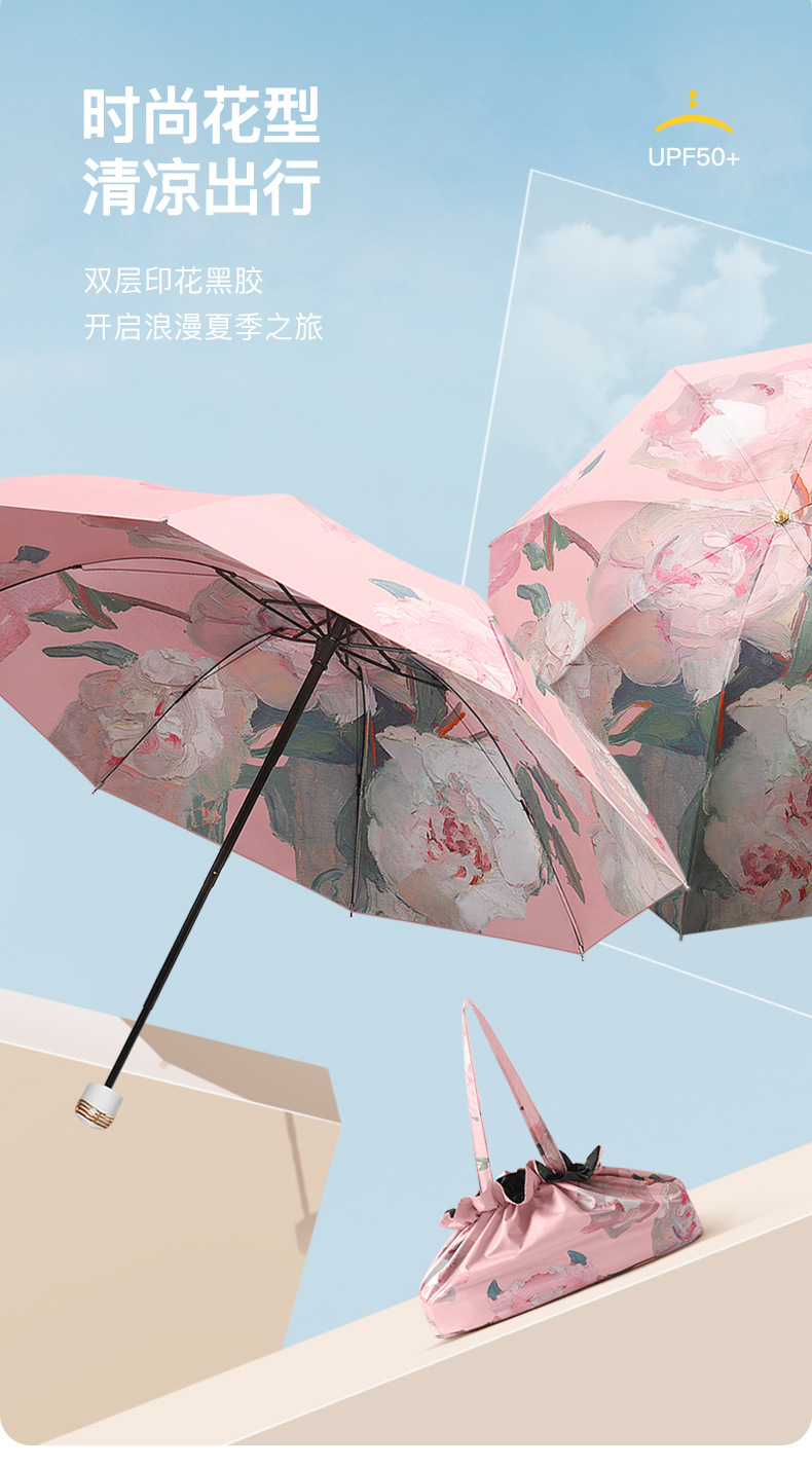 黑胶双层太阳伞防晒防紫外线女手动折叠晴雨两用8骨黑胶晴雨伞