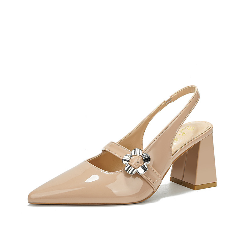 2025春夏新款欧美尖头气质包头半拖粗高跟凉鞋后空绊带女凉鞋