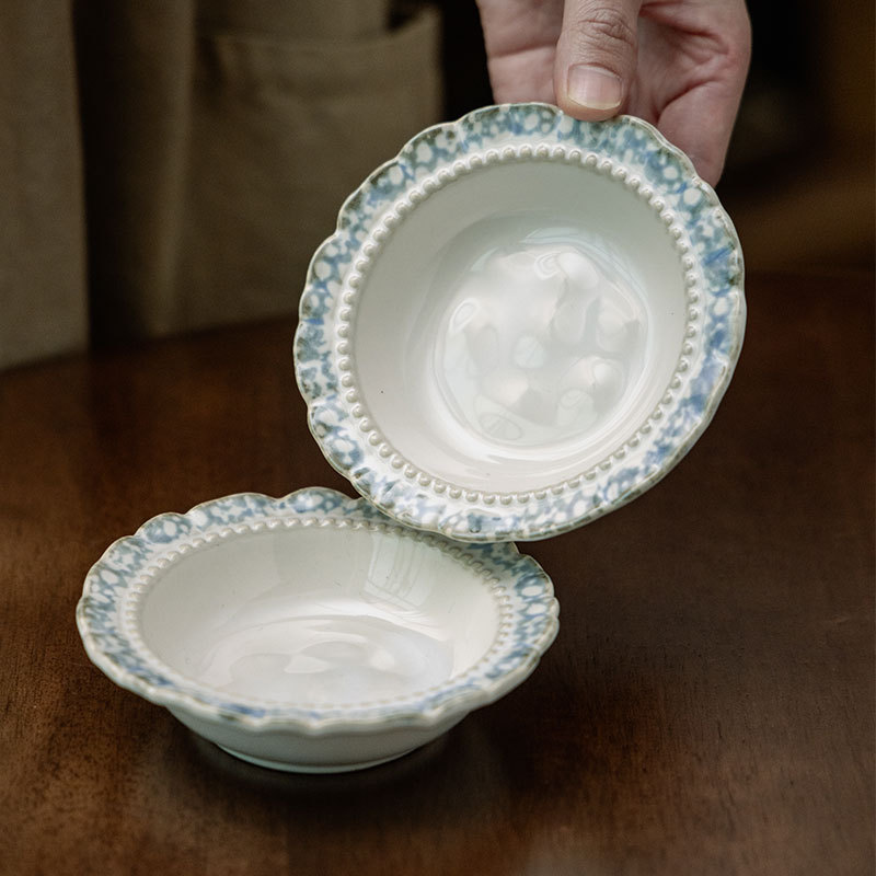法式复古风陶瓷味碟花边形甜品点心碟高级感家用餐具碟餐厅小菜碟
