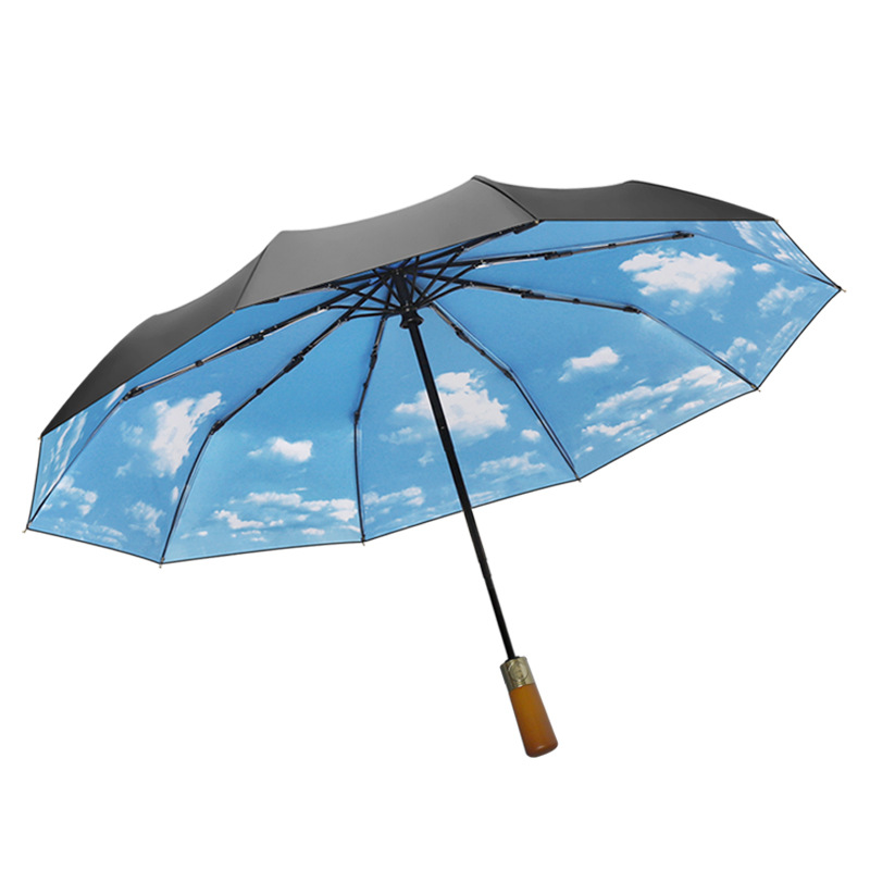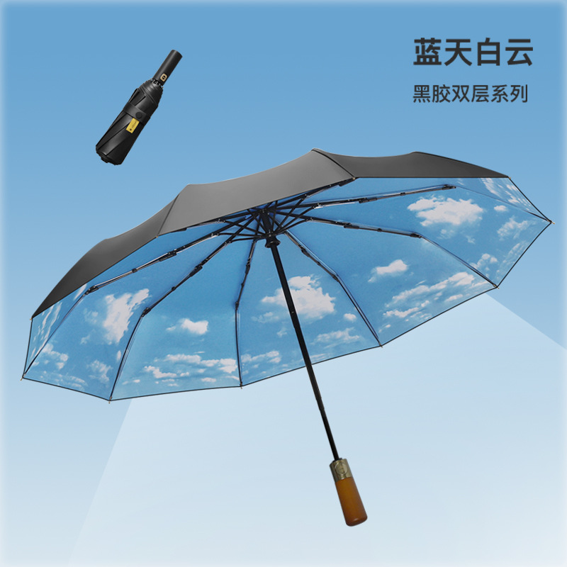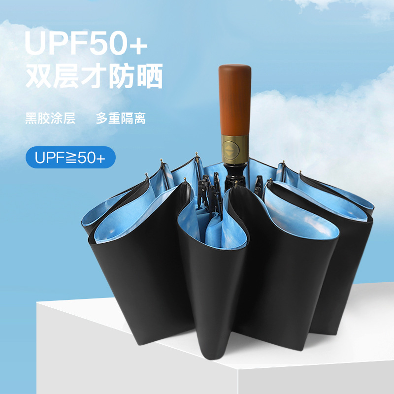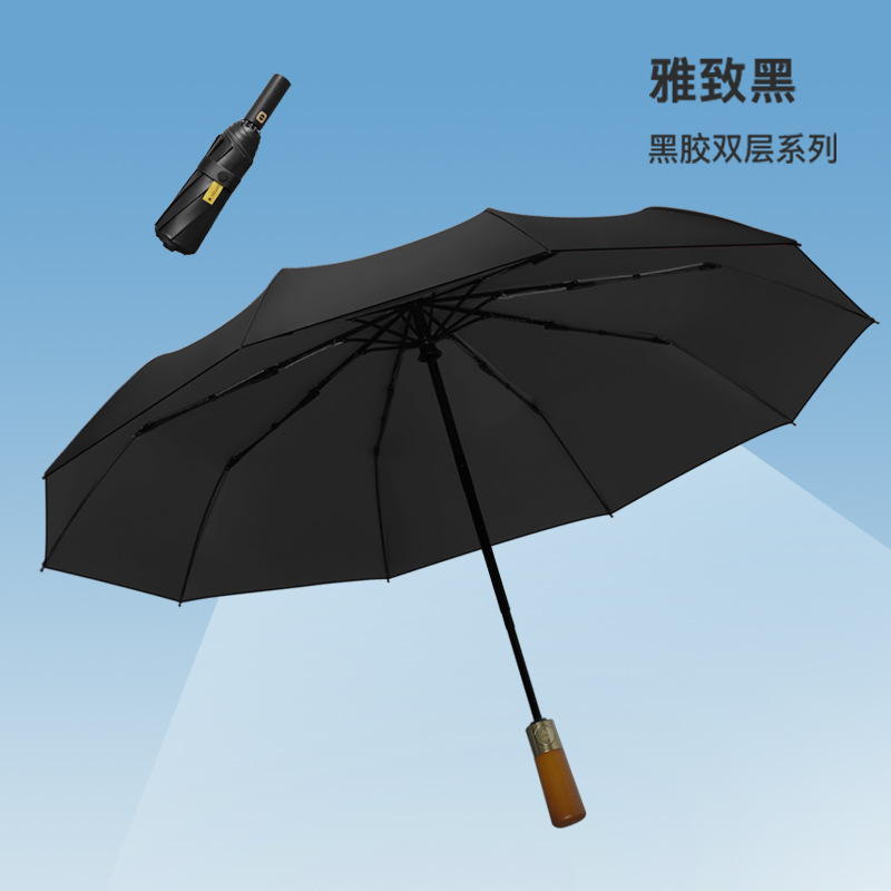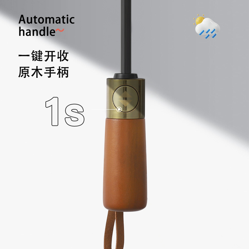 新款复古木柄全自动伞双层雨伞十骨折叠伞男士双人