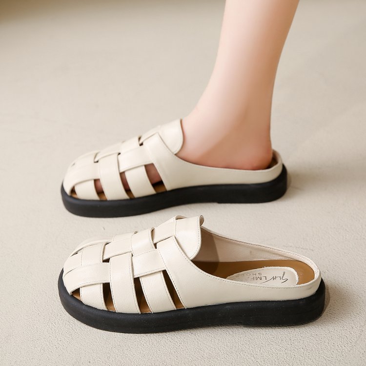 夏季新款包头镂空平底拖鞋女外穿编织套脚懒人鞋时尚女鞋