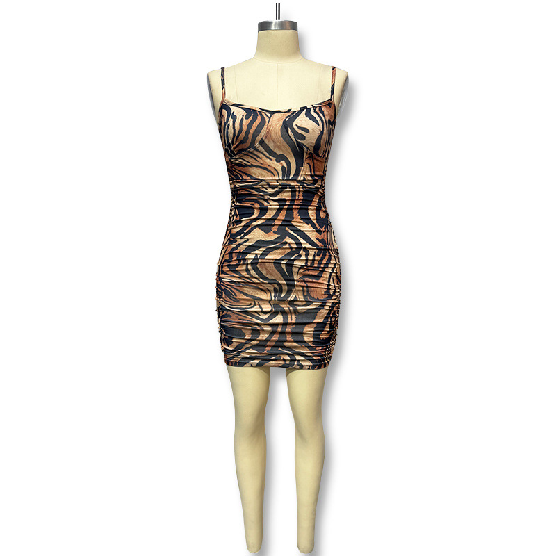 欧美风夏季新款女装吊带V领性感时尚修身印花连衣裙
