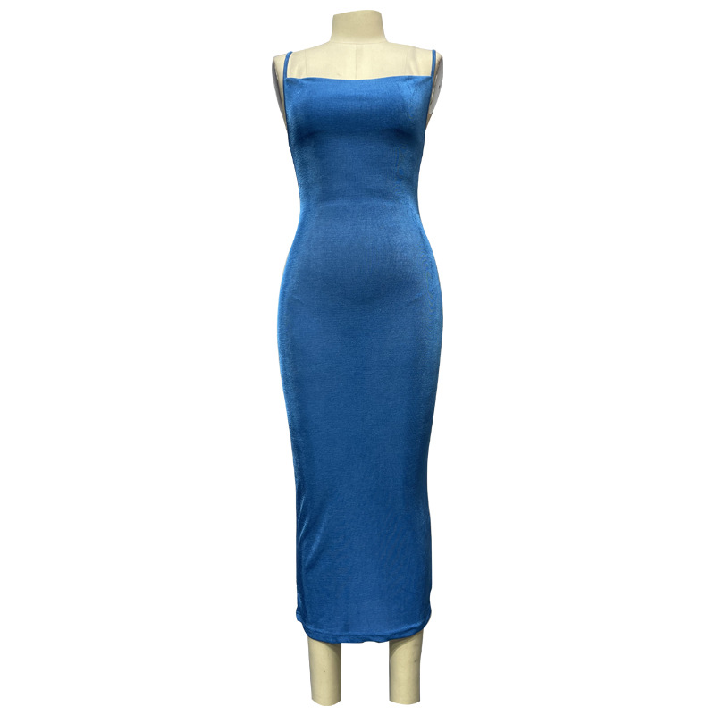 欧美风长裙新款女装简约吊带性感低胸露背修身连衣裙