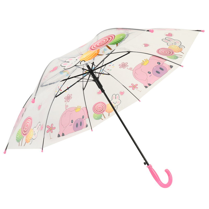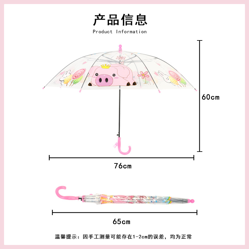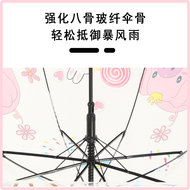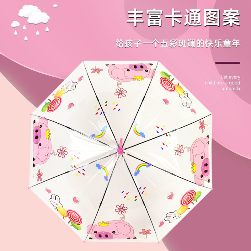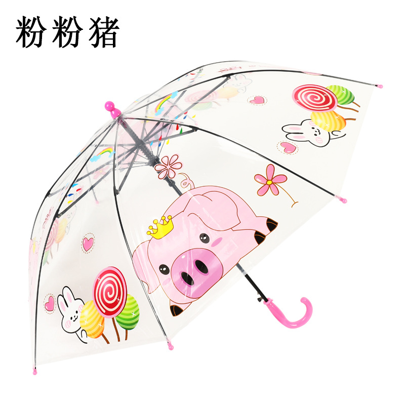 创意可爱猪猪儿童雨伞透明自动开长柄伞纤维骨男孩女孩便携儿童伞