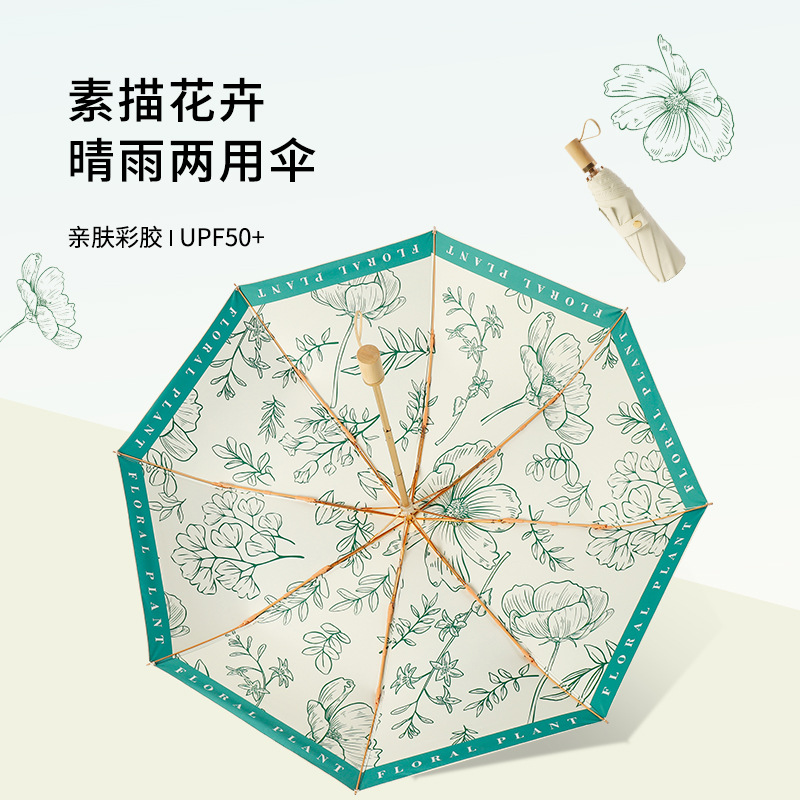 新款色迁移彩胶三折遮阳伞防晒防紫外线法式复古晴雨两用太阳伞女