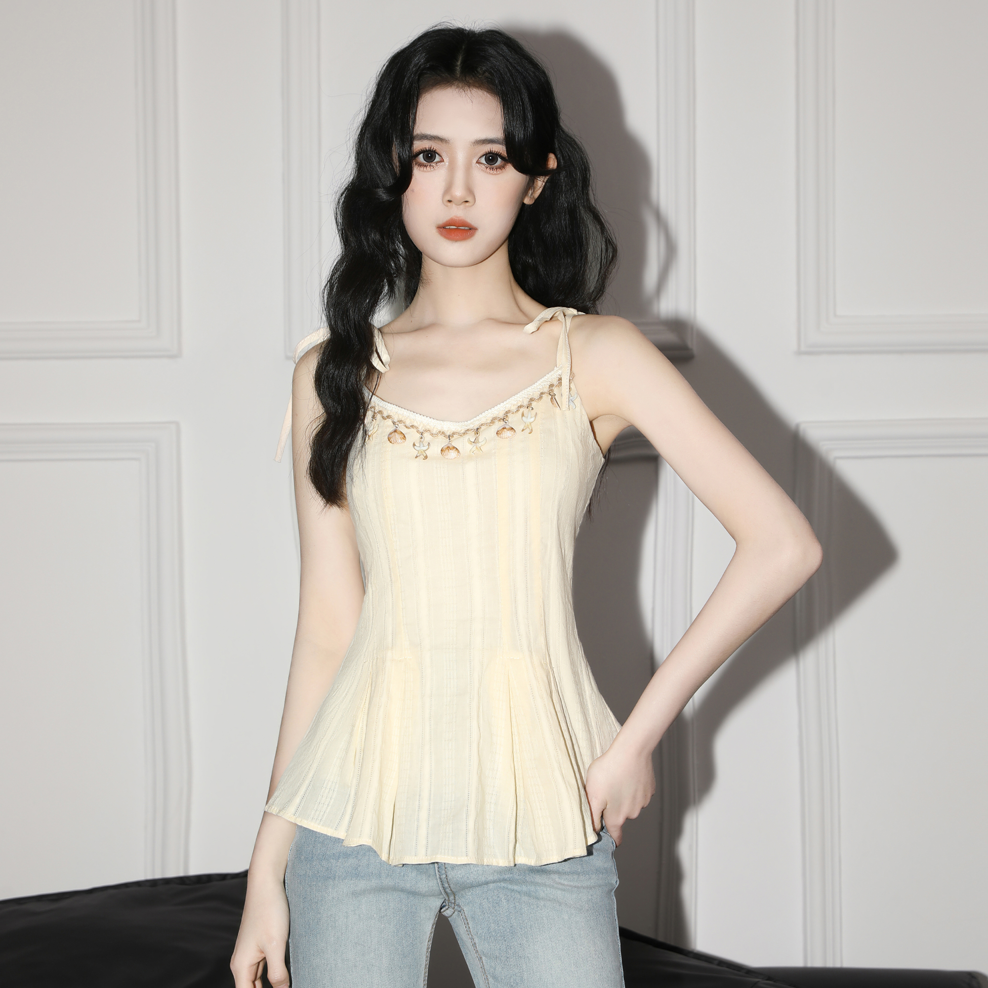 复古吊带背心女夏外穿2025夏季新款法式刺绣收腰显瘦无袖短款上衣