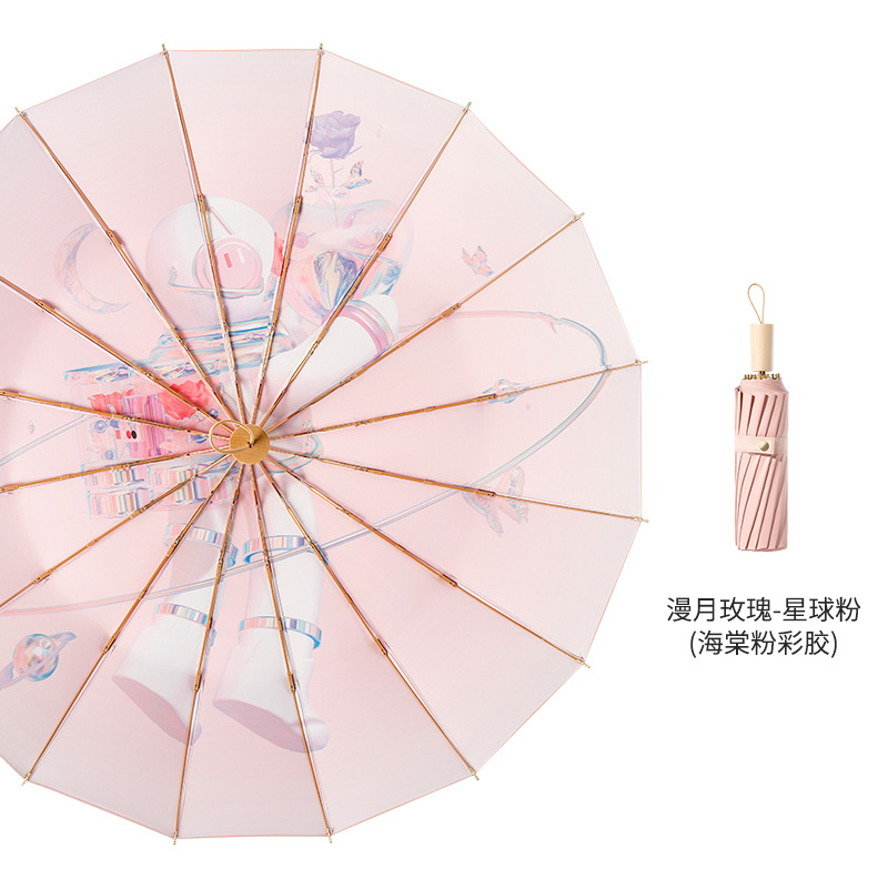新款16骨复合彩胶晴雨两用遮阳伞手开折叠防晒晴雨伞三折女太阳伞