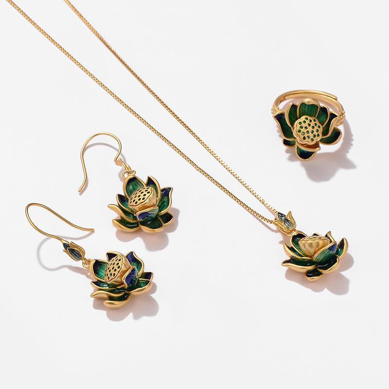 宝莲雅金属雅致几何型荷花沙金项链高级珐琅