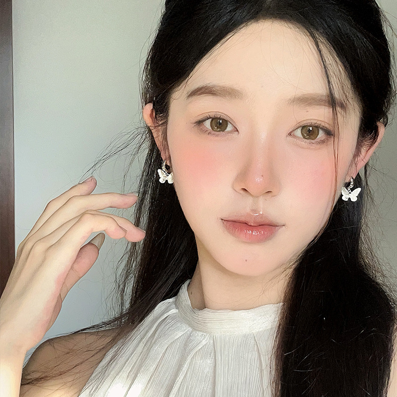 简约百搭银色蝴蝶耳圈冷淡风高级感耳环女夏季新款清冷感耳饰耳坠