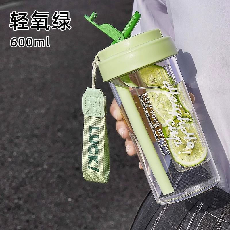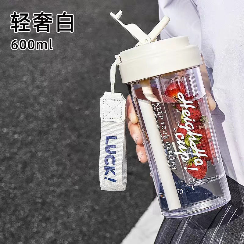 塑料水杯女生高颜值新款带茶隔吸管杯夏季大容量网红咖啡杯子