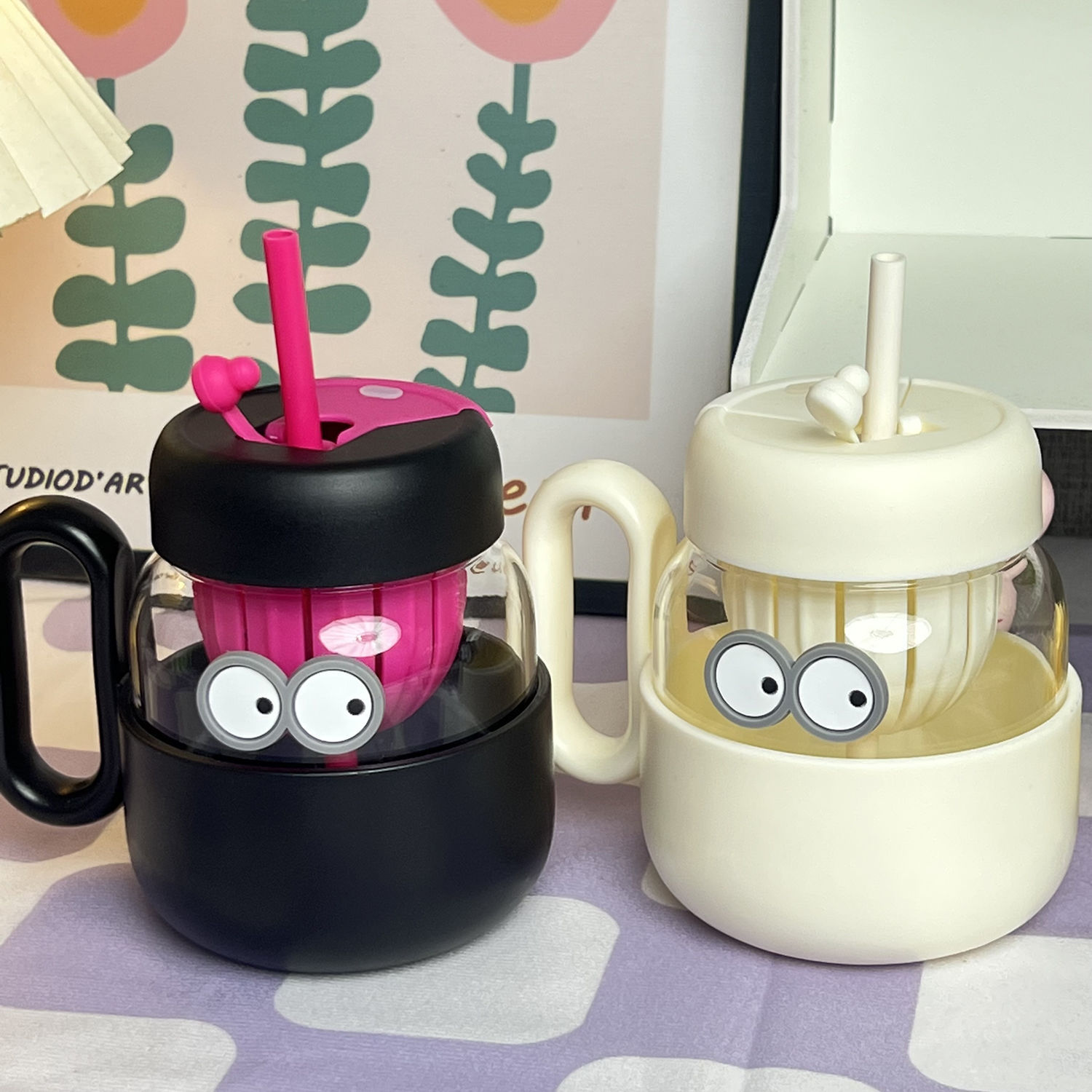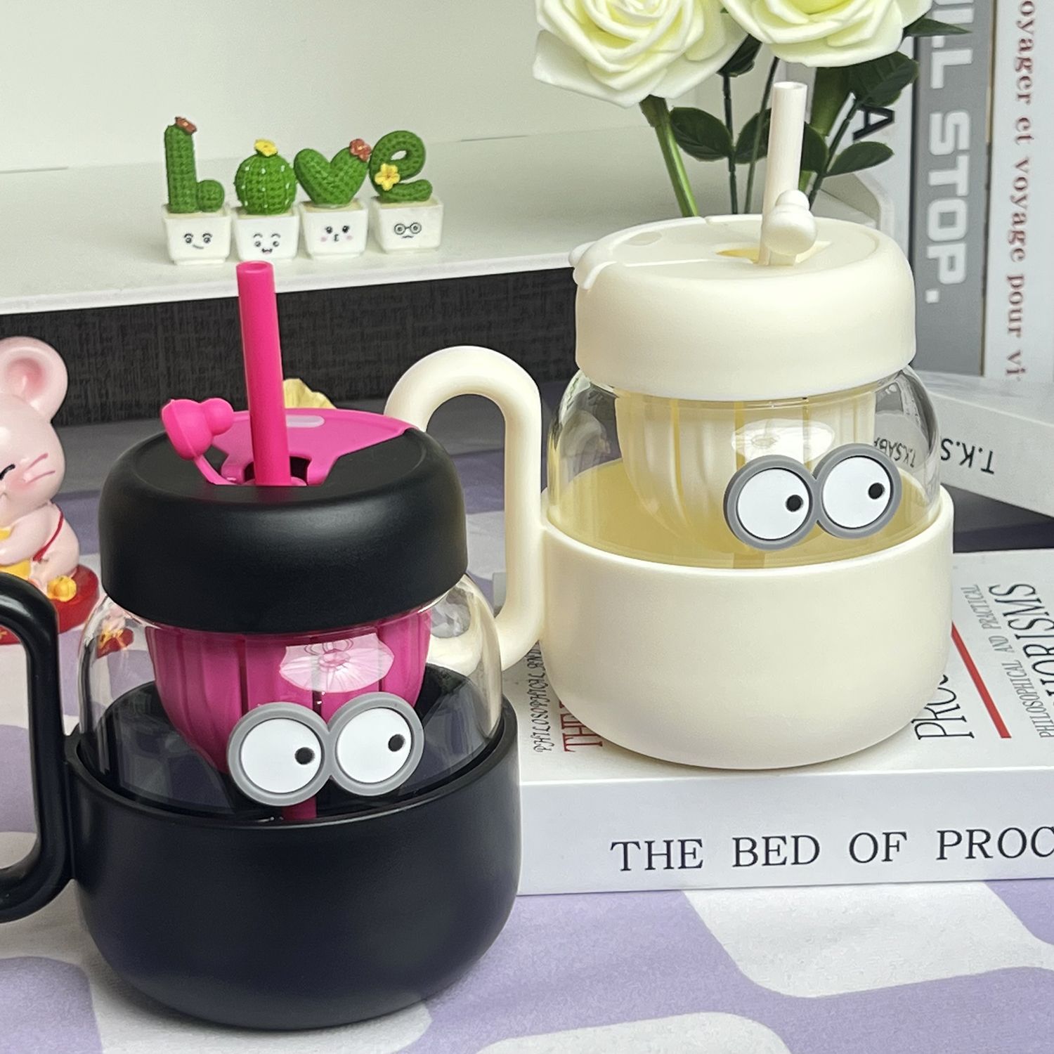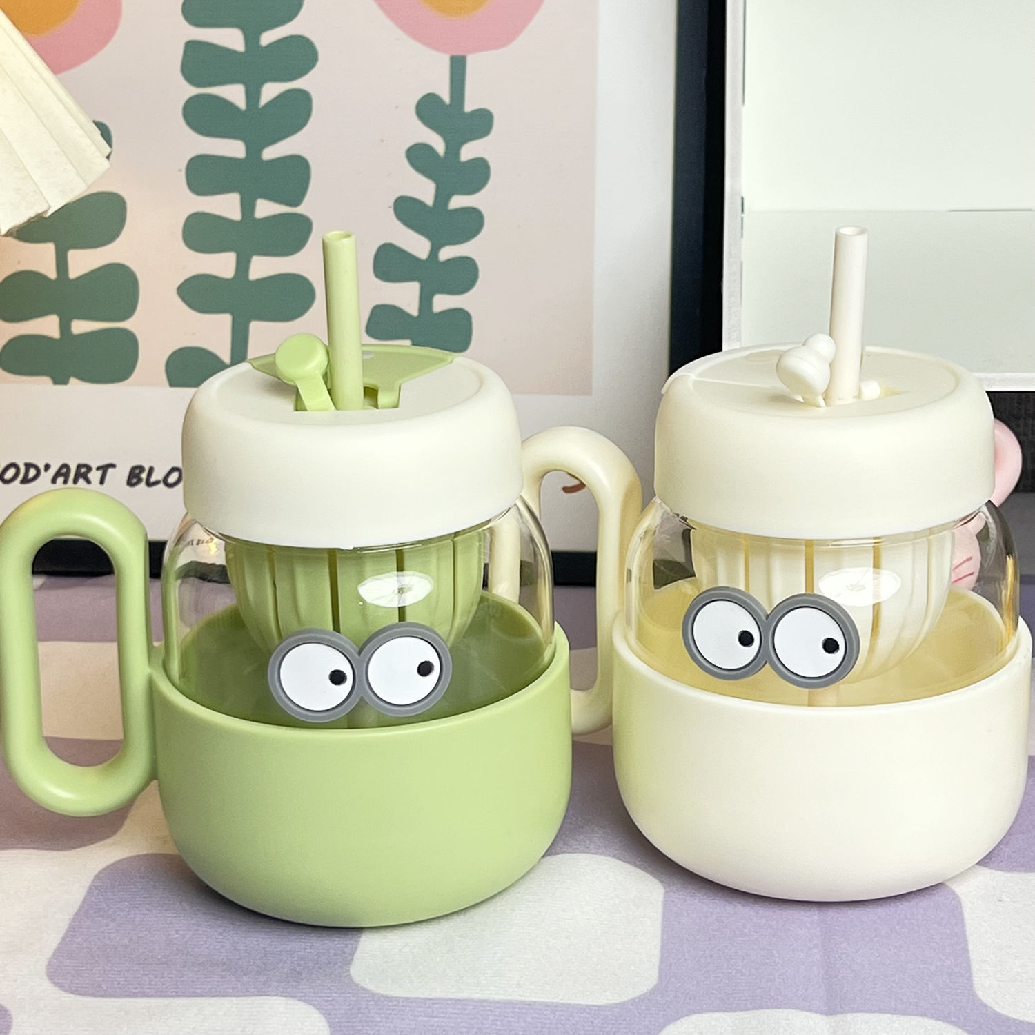 夏季潮流杯女高颜值ins玻璃大容量便捷式耐高温小众学生吸管水杯