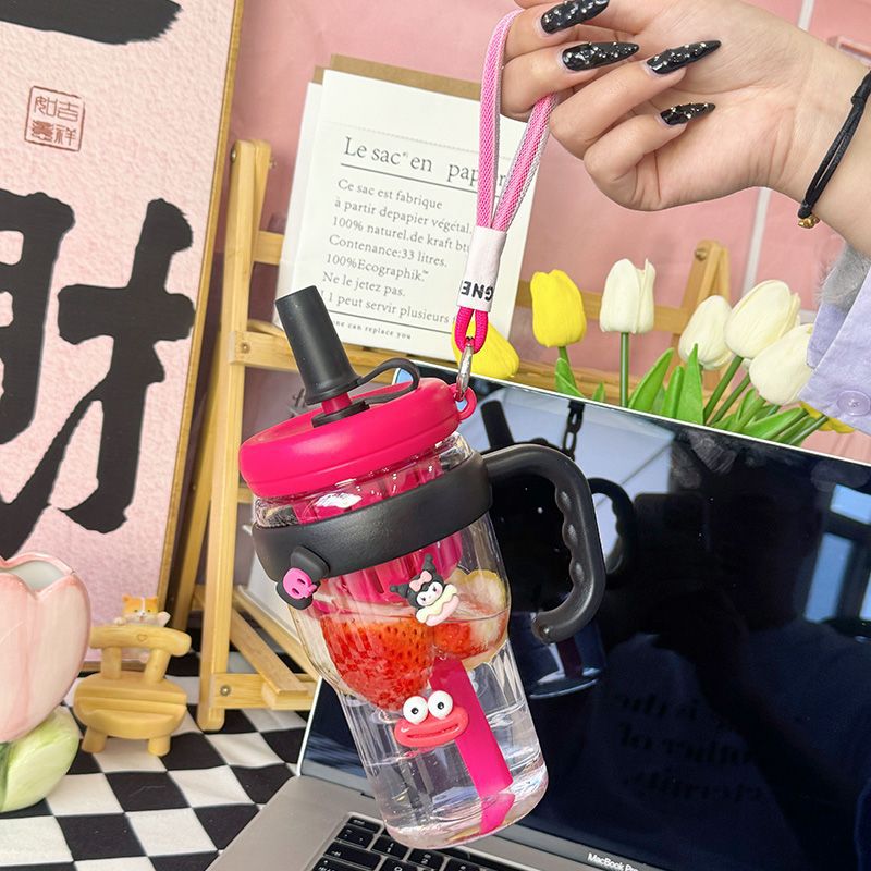 水杯女生高颜值大容量小众吸管杯带茶漏办公室便携耐高温带把杯子