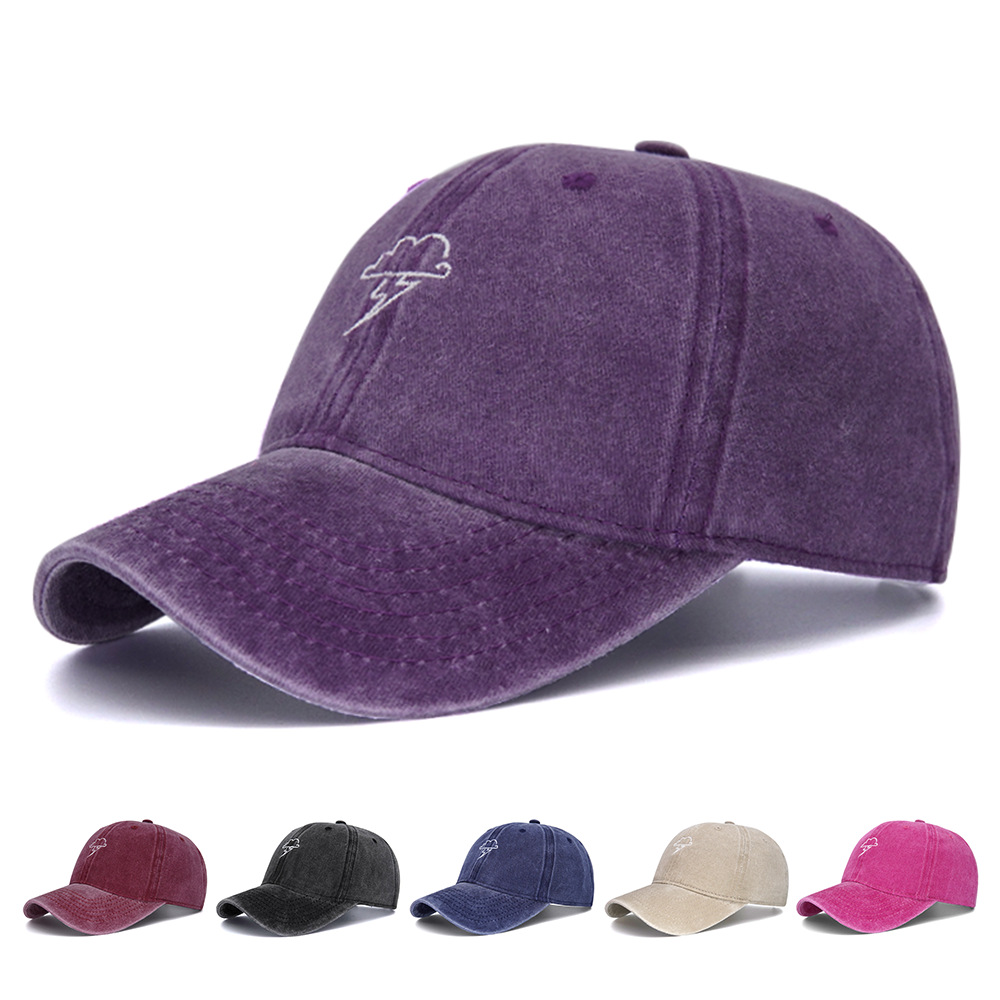 水洗棉闪电云刺绣棒球帽女士夏季防晒复古做旧软顶时尚鸭舌帽
