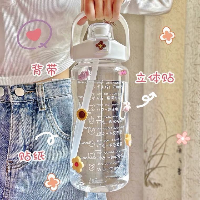 夏季超大容量带吸管喝水杯女学生便携高颜值男士运动水壶大号
