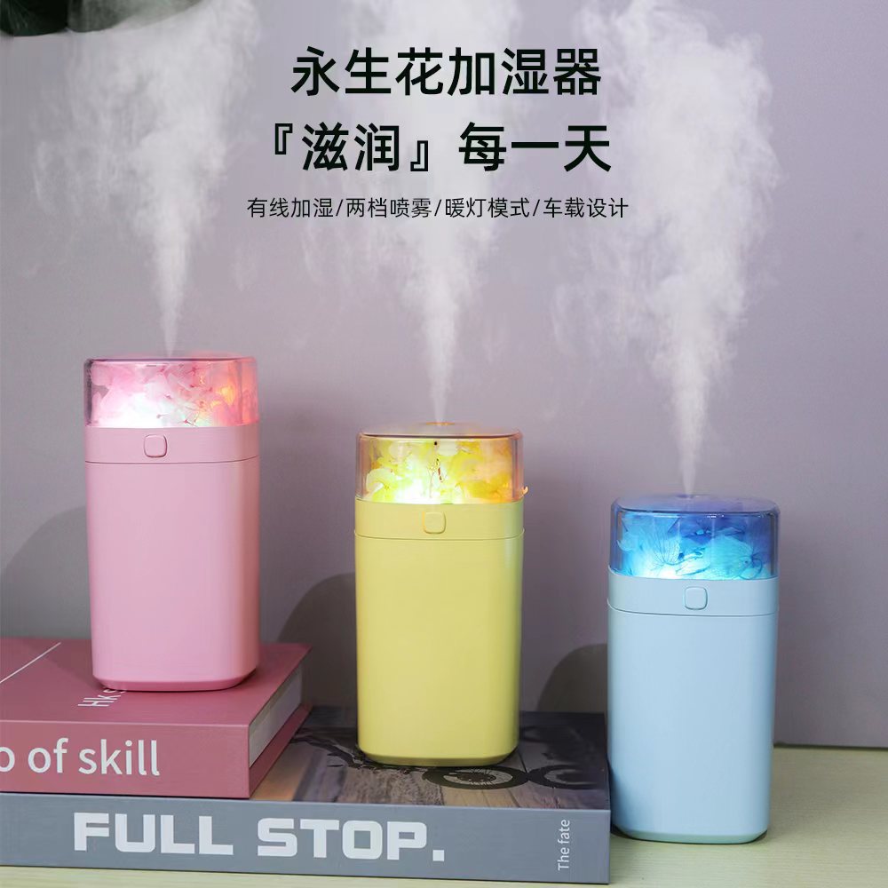 新款永生花唯美小清新加湿器魔方简约USB多场景加湿器