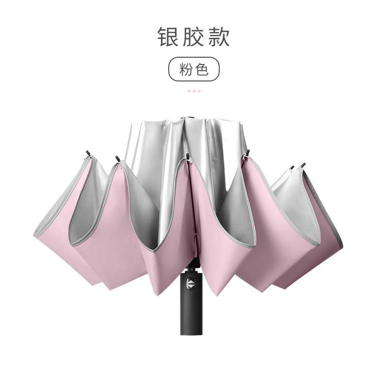 新款钛银胶反光条三折反向伞防晒自动伞折叠双人大号抗风车用雨伞