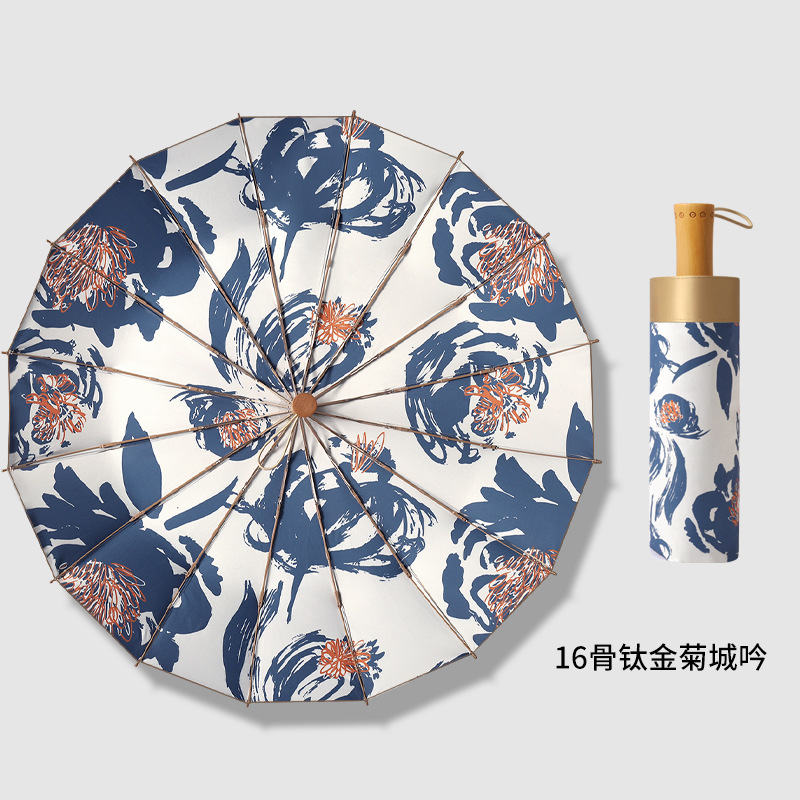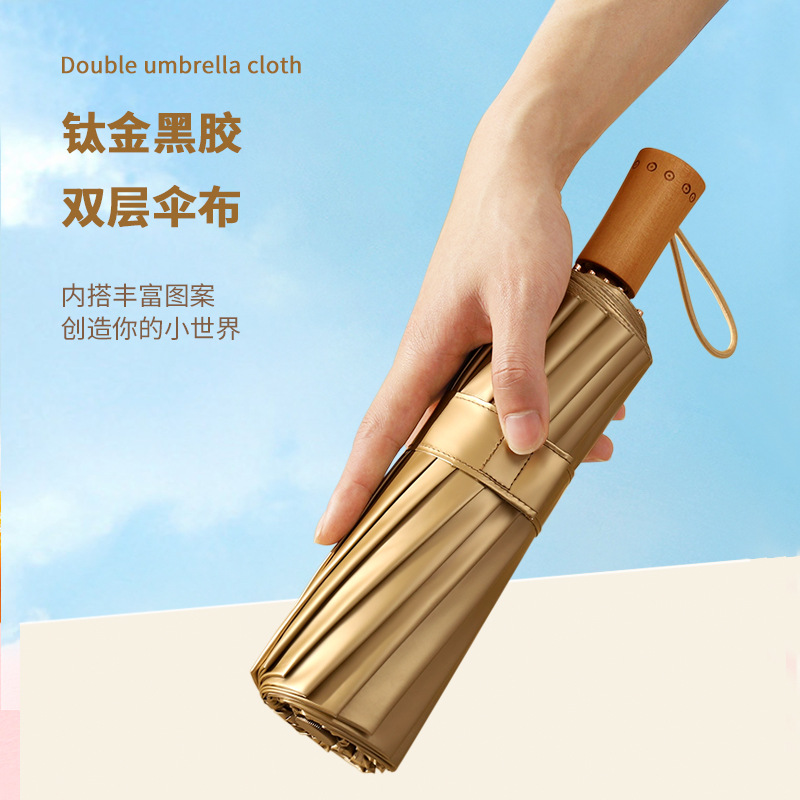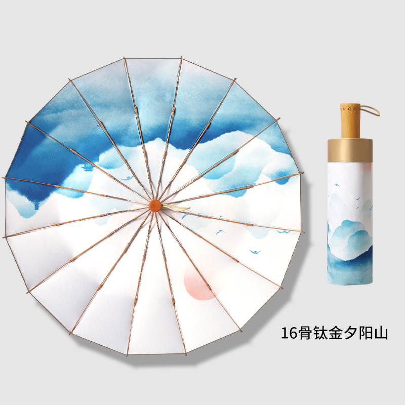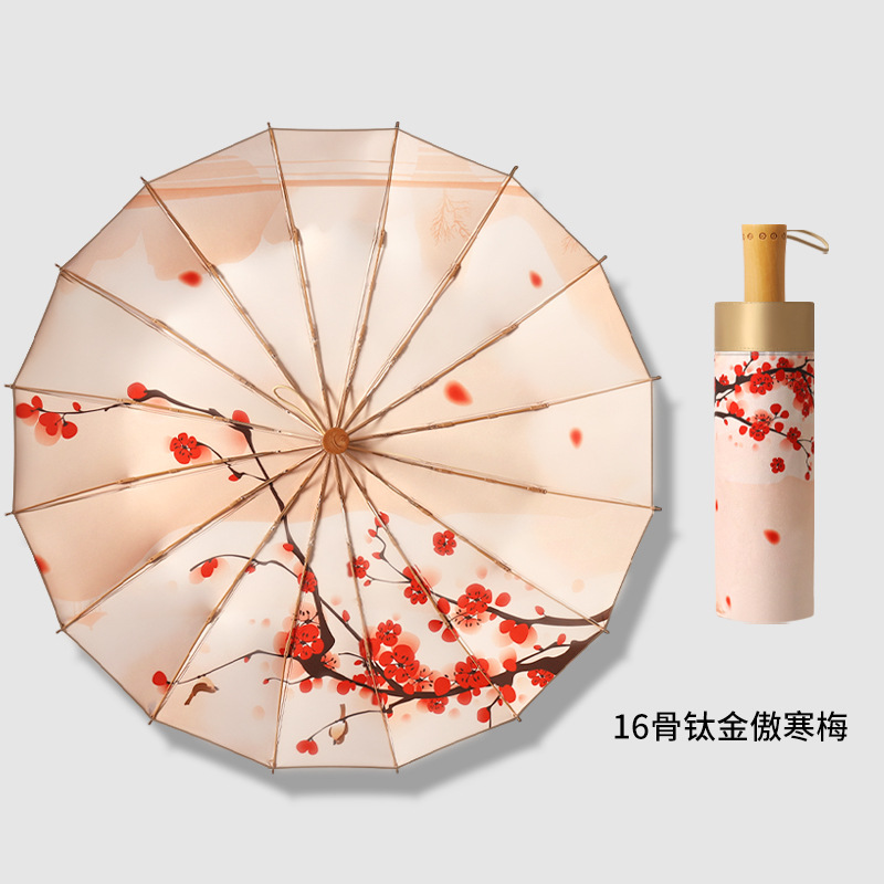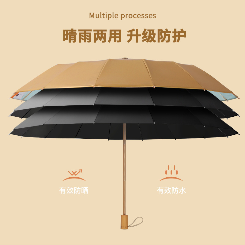 三折16骨复古木柄加大晴雨两用雨伞日系小清新折叠伞抗风伞金胶伞