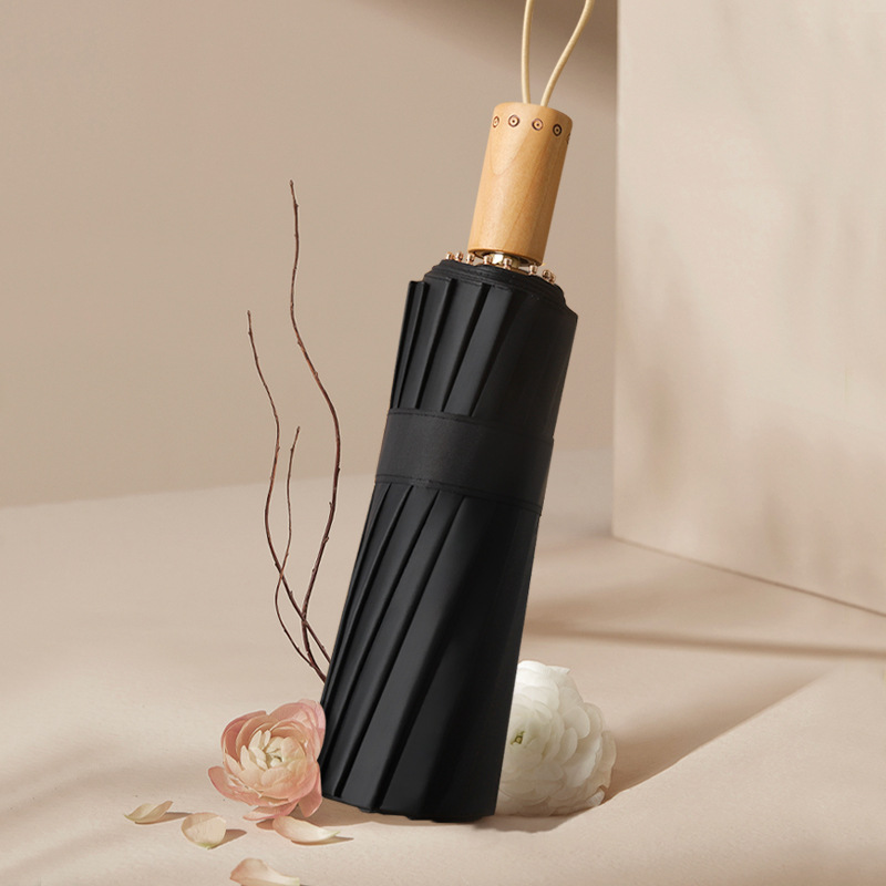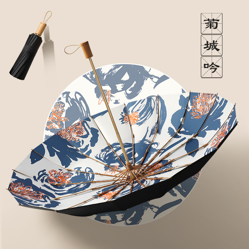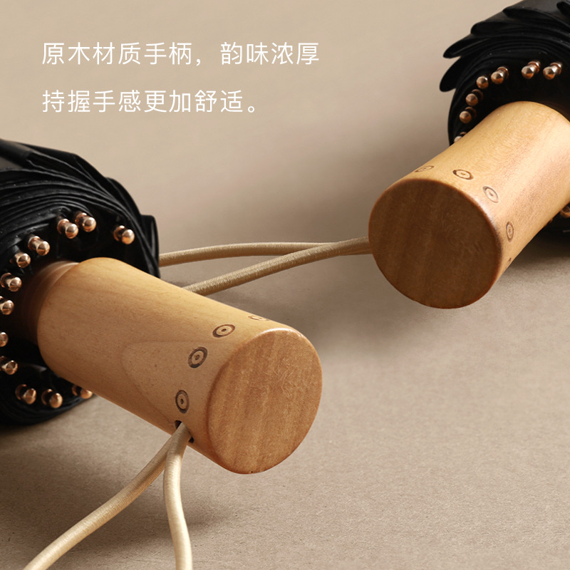 复古木手柄三折伞16骨遮阳防晒伞小清新防晒防紫外线女双人晴雨伞