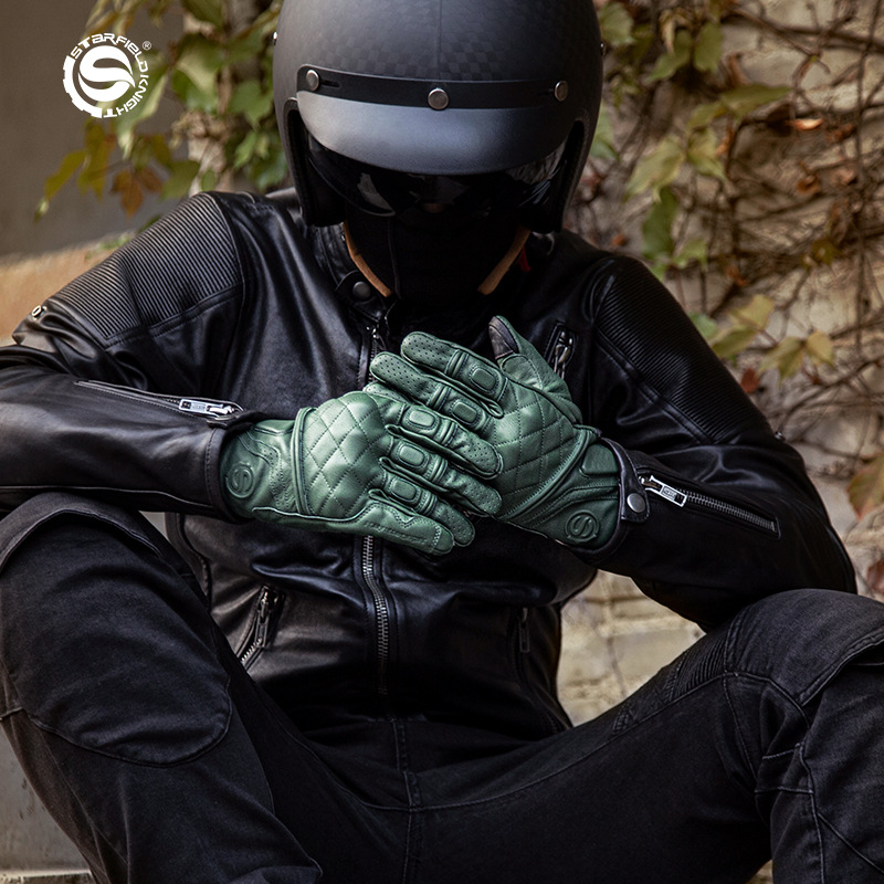 星空骑士摩托车复古皮手套男防摔可触屏越野骑行四季机车赛车手套