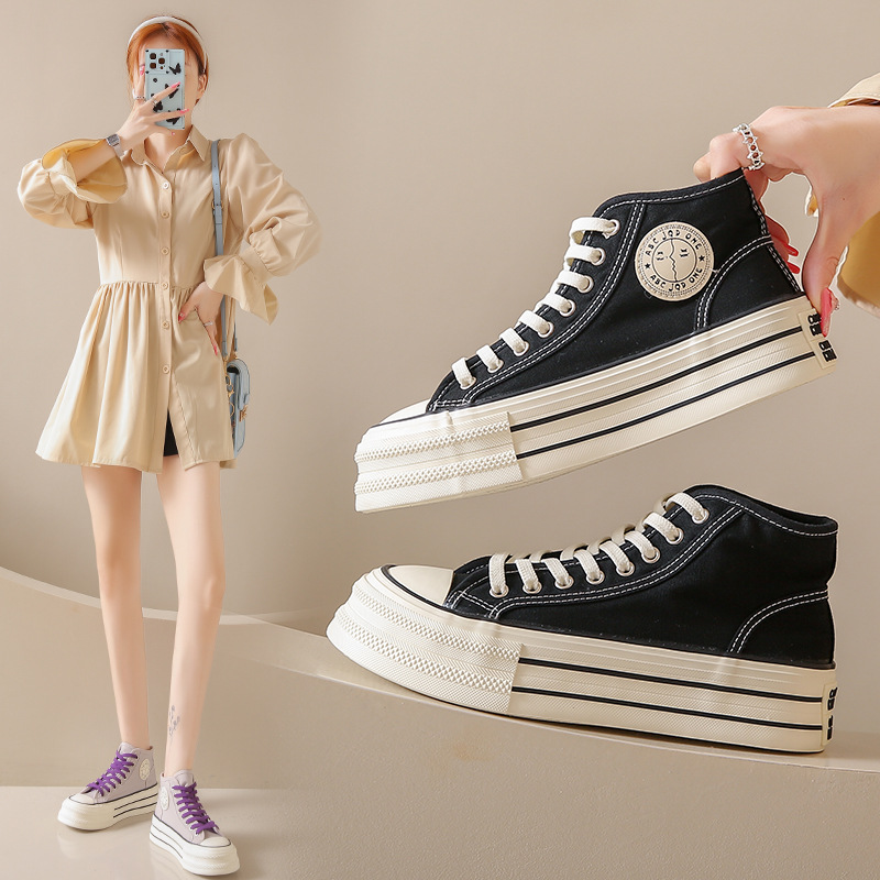 ins高帮帆布鞋女夏季新款百搭学生透气厚底板鞋休闲鞋女TP239
