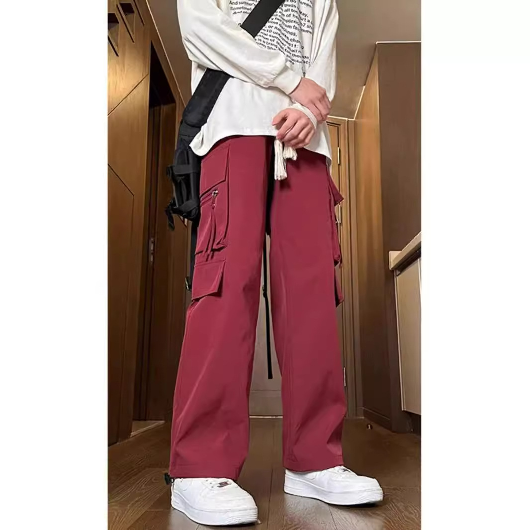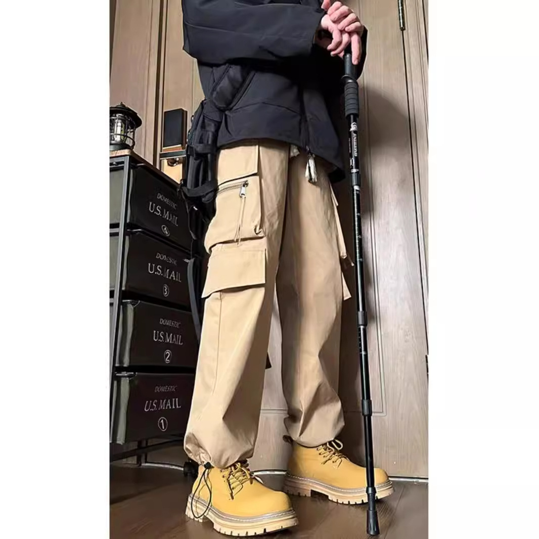 工装裤男士夏季新款美式多口袋休闲裤潮牌宽松百搭直筒束脚九分裤