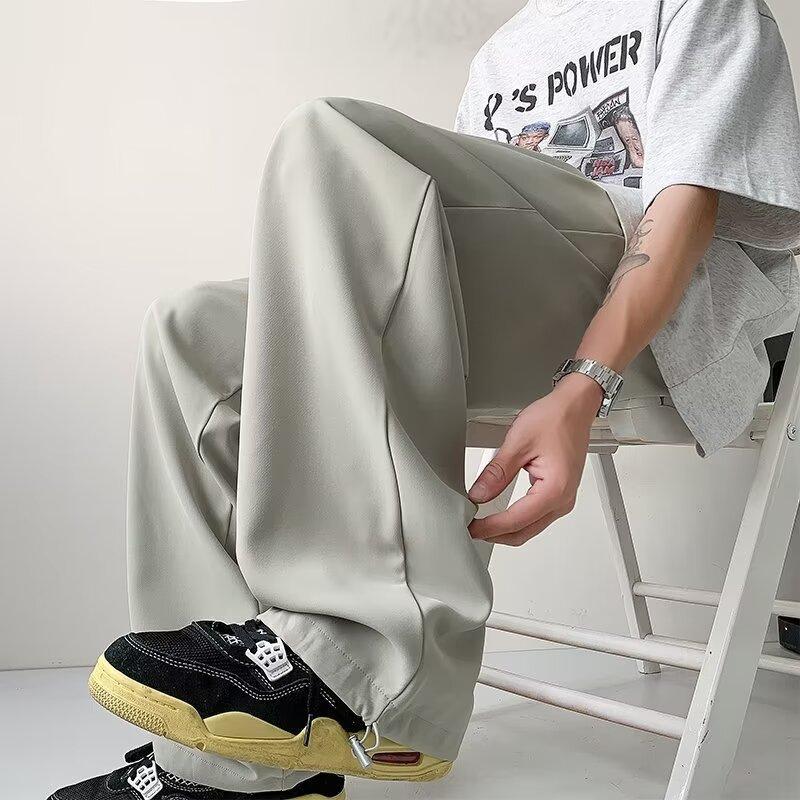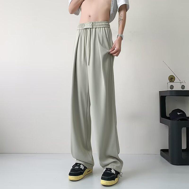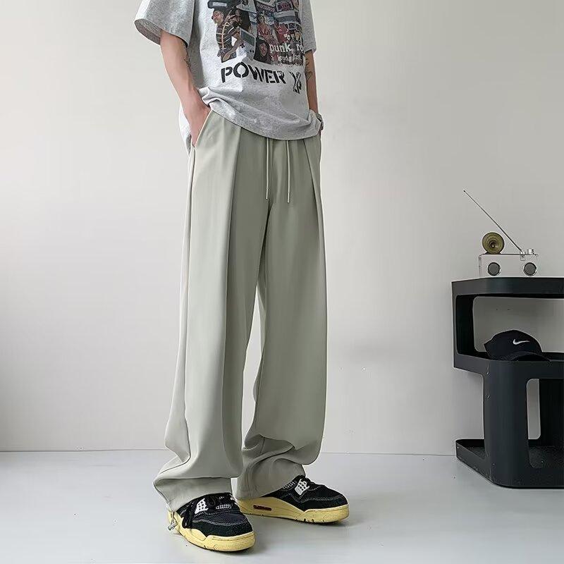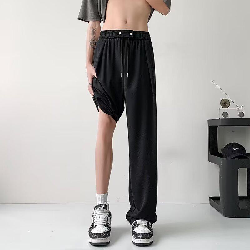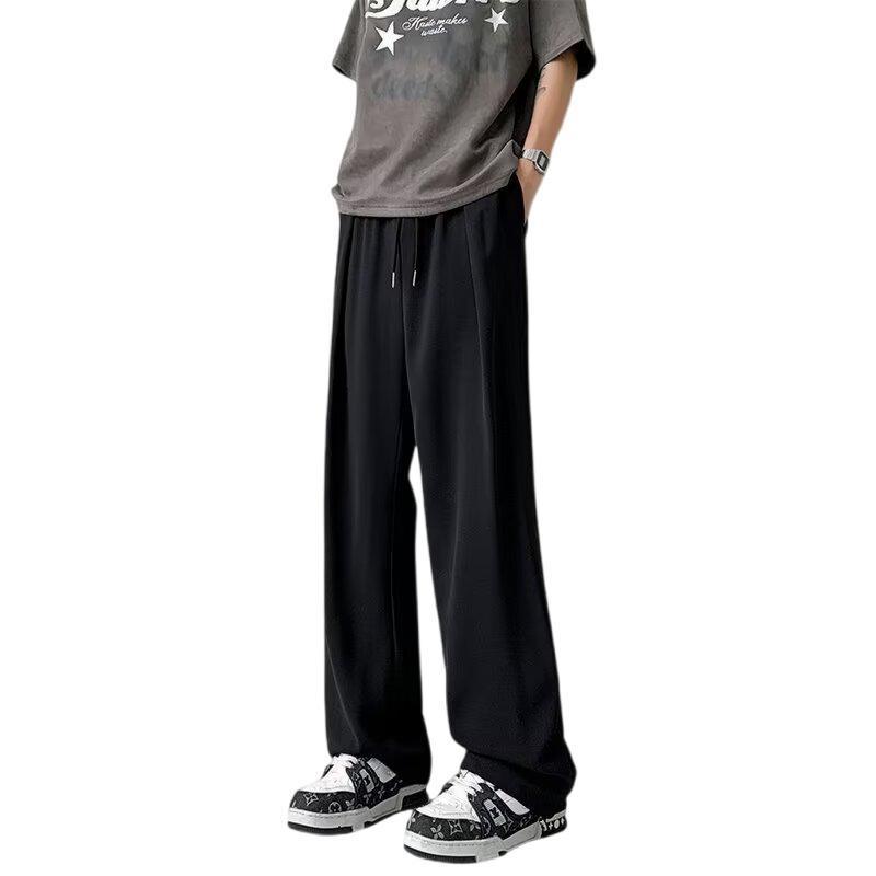 黑色休闲裤男士夏季新款宽松直筒长裤潮流百搭松紧腰休闲风长裤子