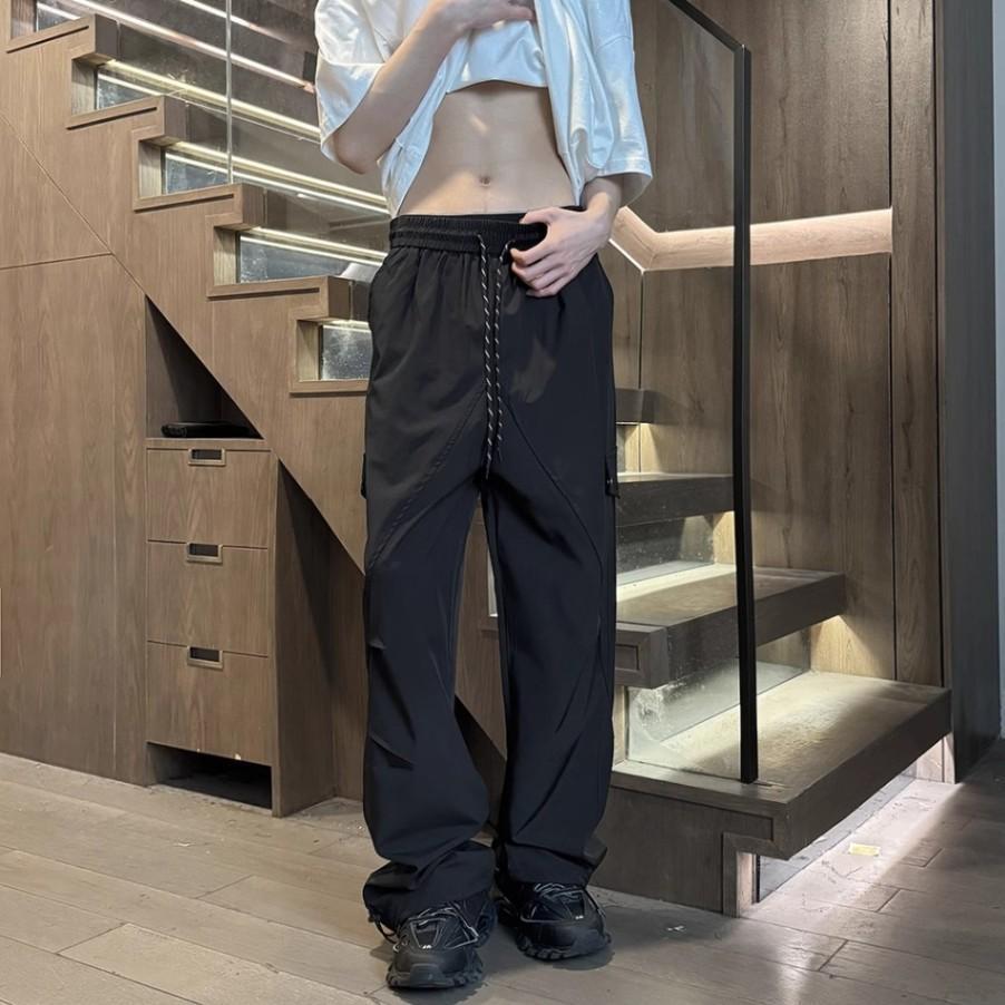 黑色防水冲锋裤子男生夏季新款运动长裤宽松时尚纯色休闲直筒长裤