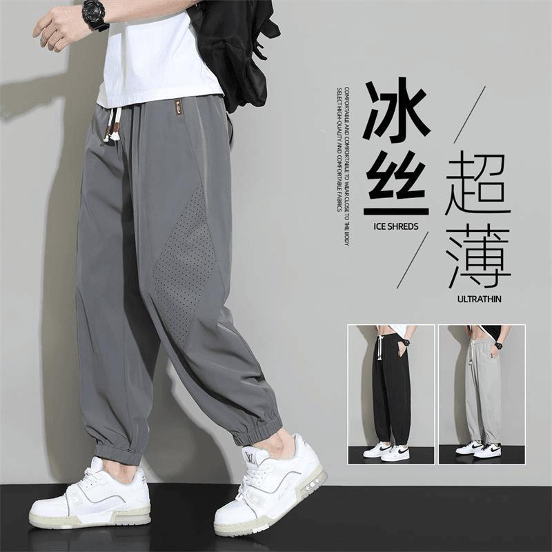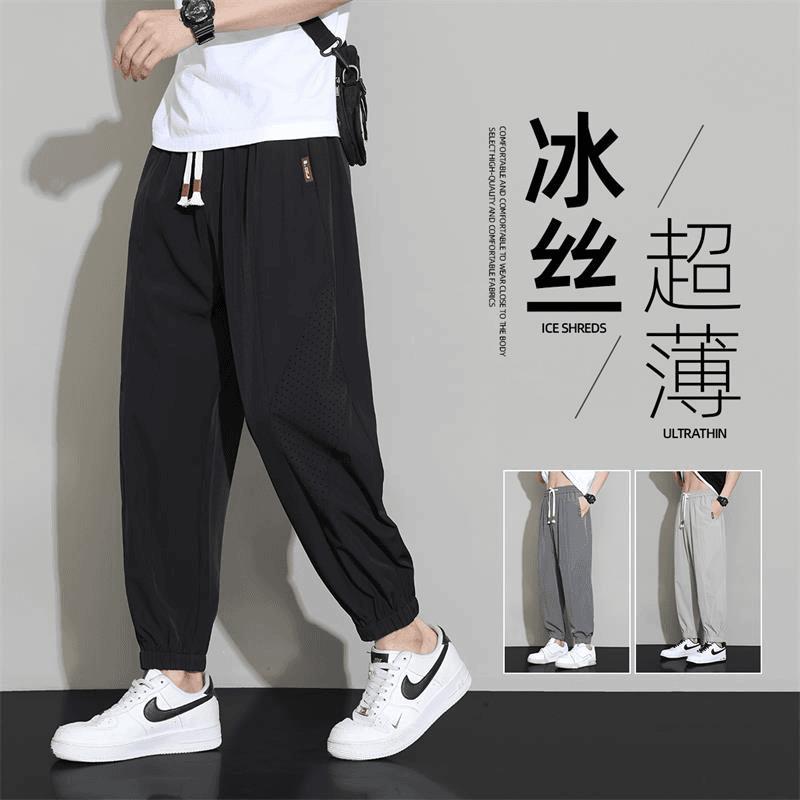 潮流简约休闲裤男士夏季新款宽松时尚百搭显瘦运动大码束脚九分裤