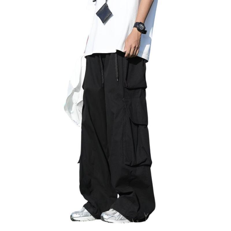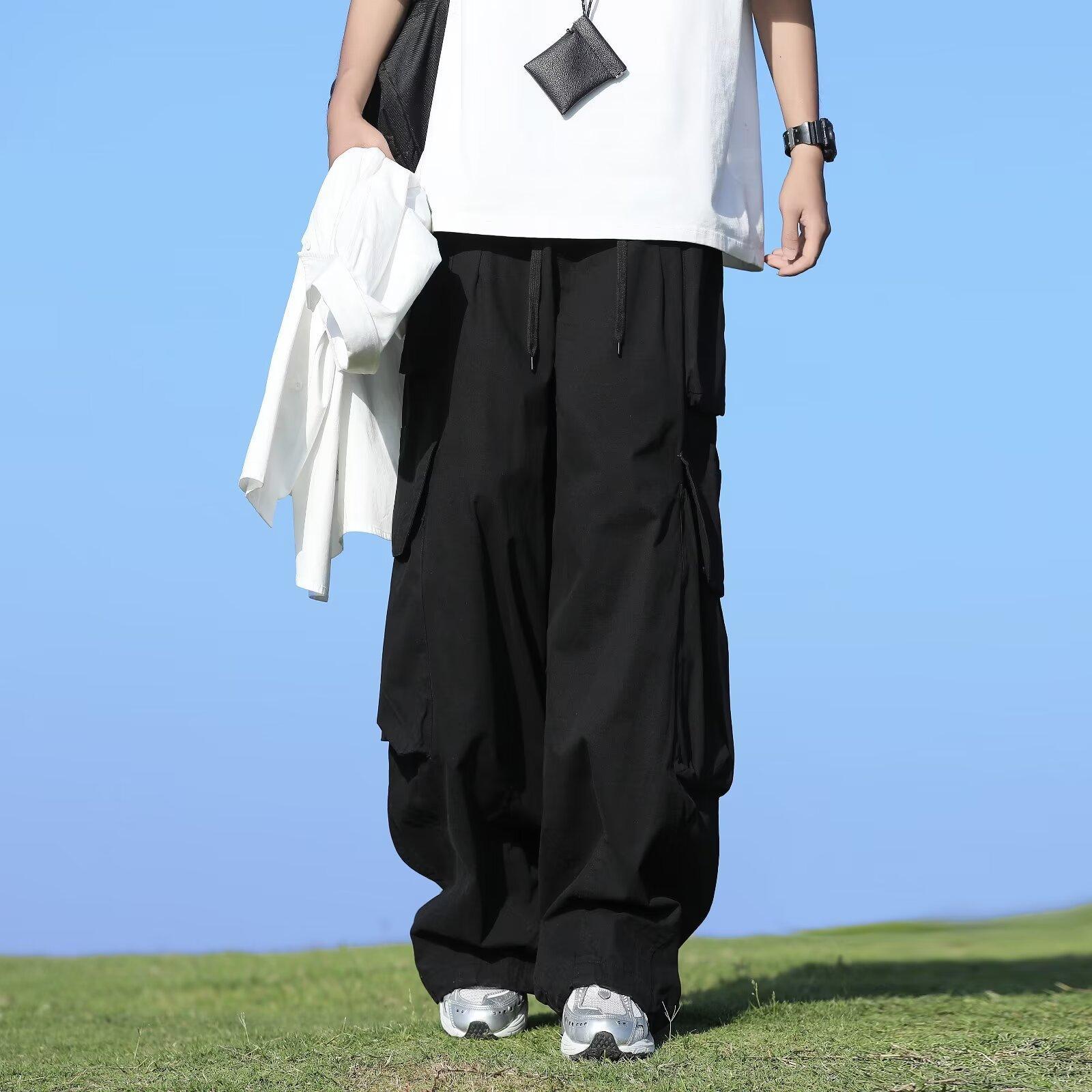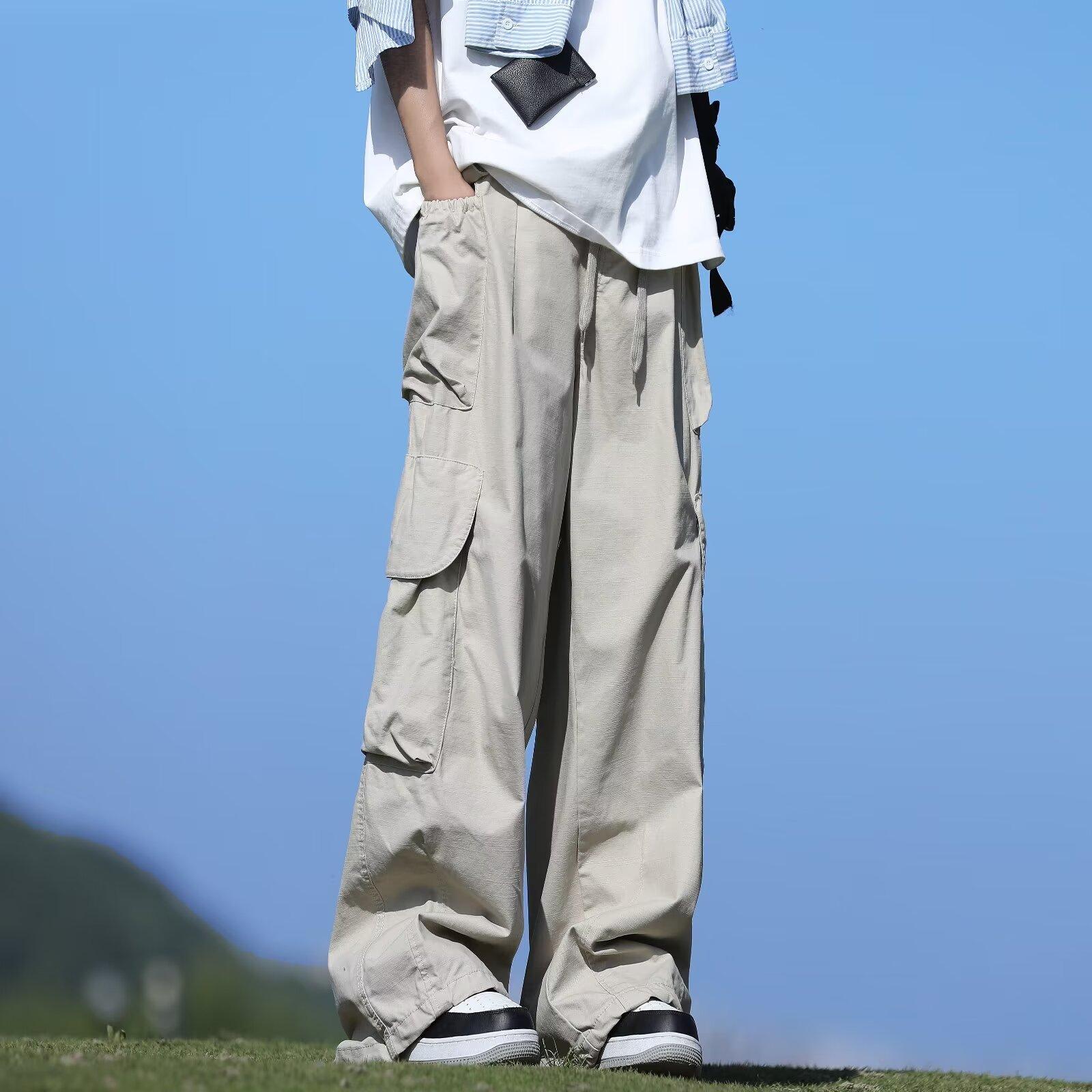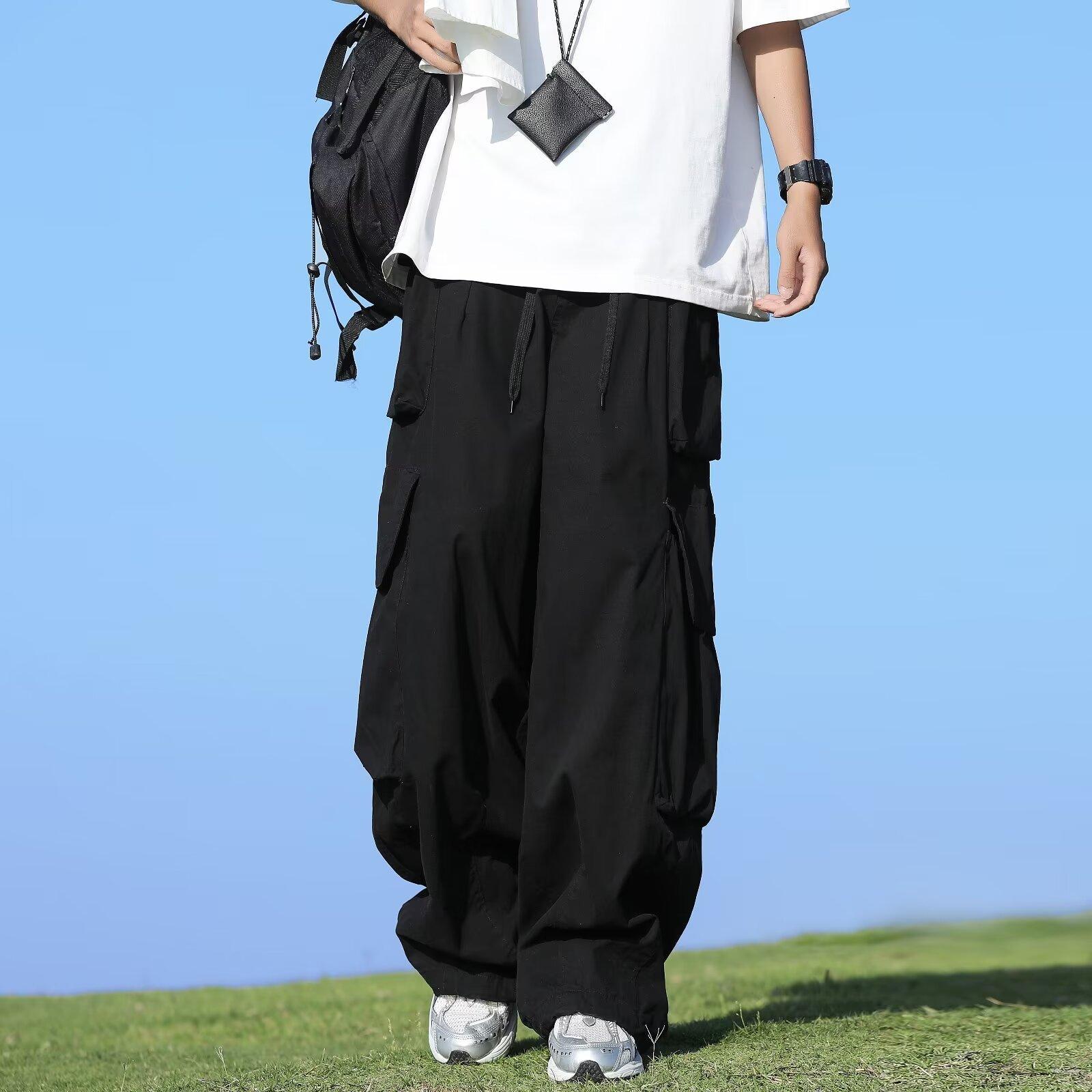日系复古纯色休闲裤男生夏季新款垂感百搭宽松多口袋工装阔腿长裤
