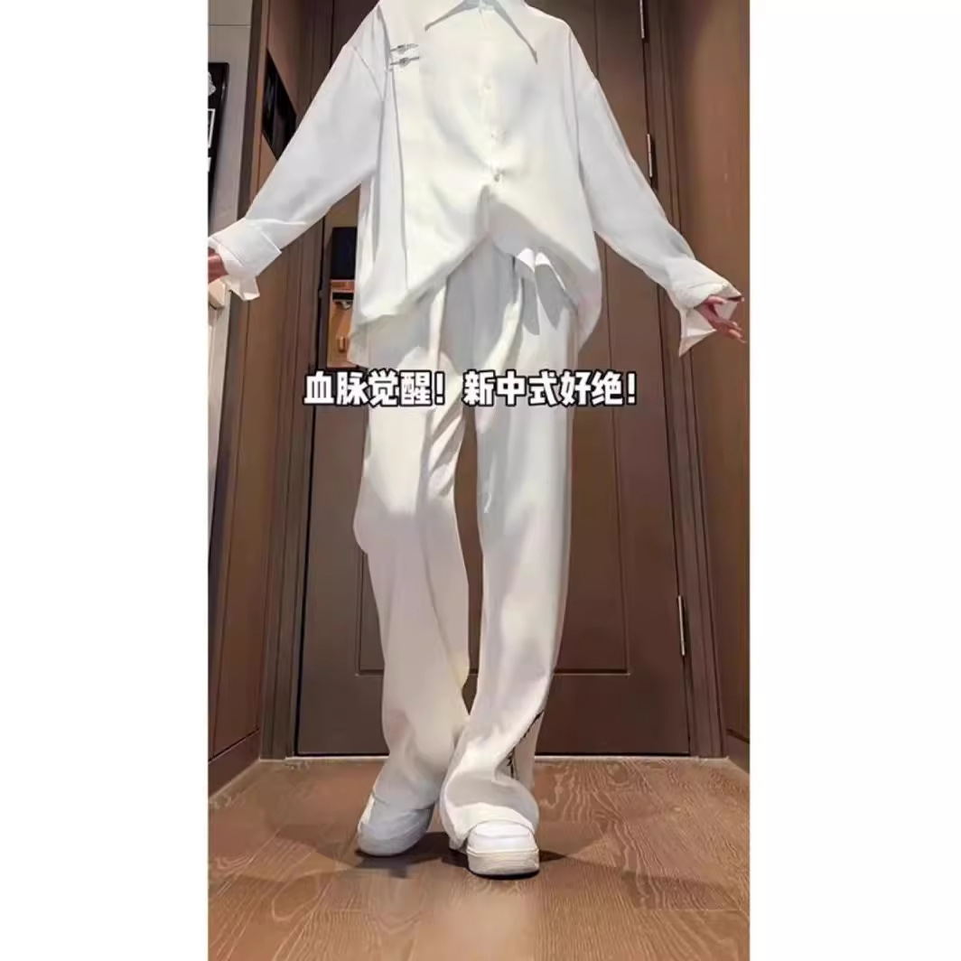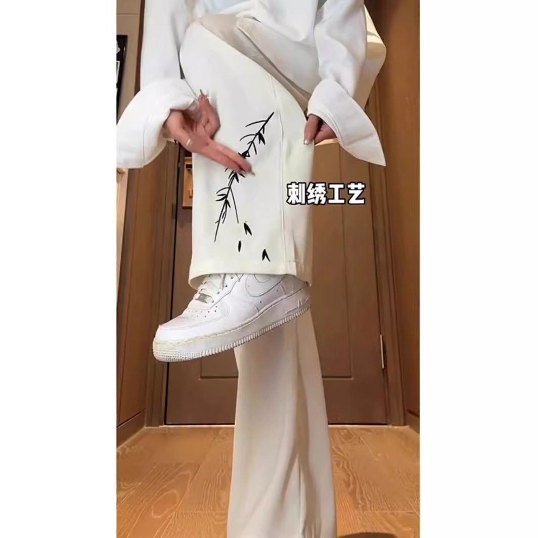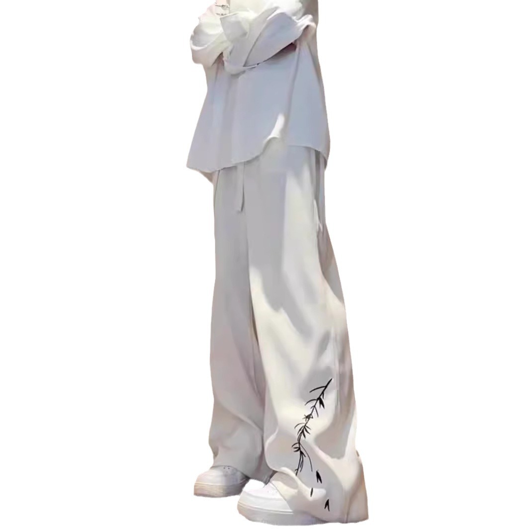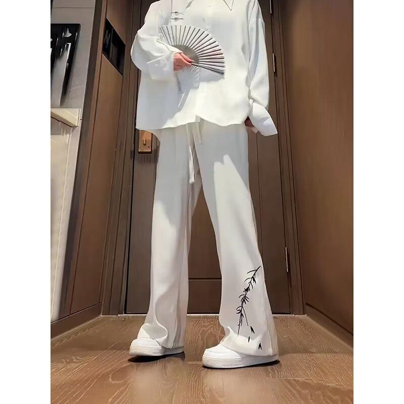 夏季新款新中式国风竹子刺绣潮牌休闲裤男生垂坠感百搭阔腿长裤子